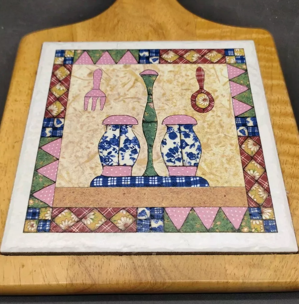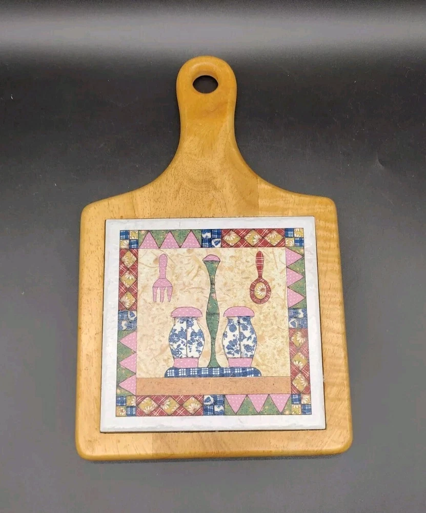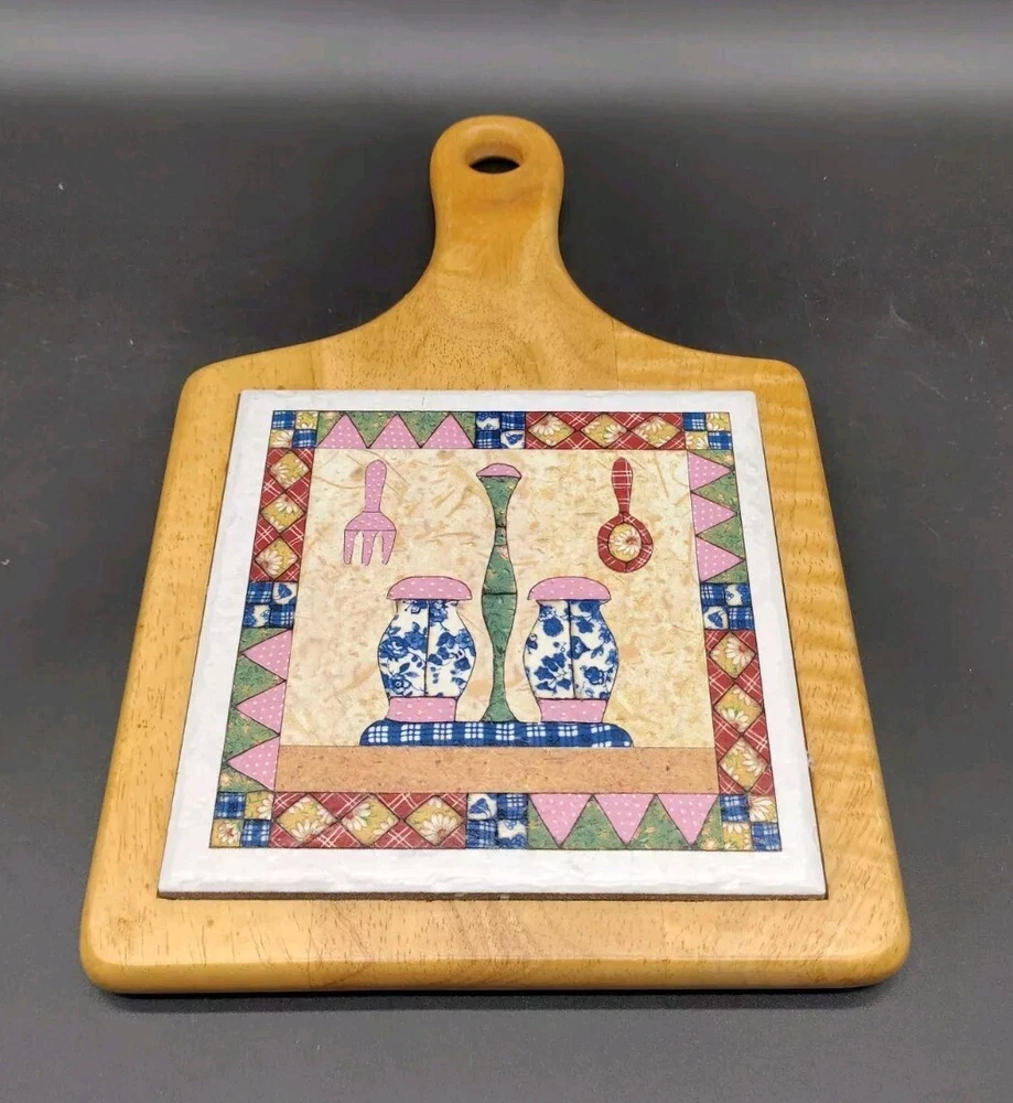 Vtg Ter Steege Holland Tile Maple Trivet Cheese Cutting Board Kitchen 12"Lx7.5"W In great used condition. No chips or cracks. Shipped with care from Kansas.