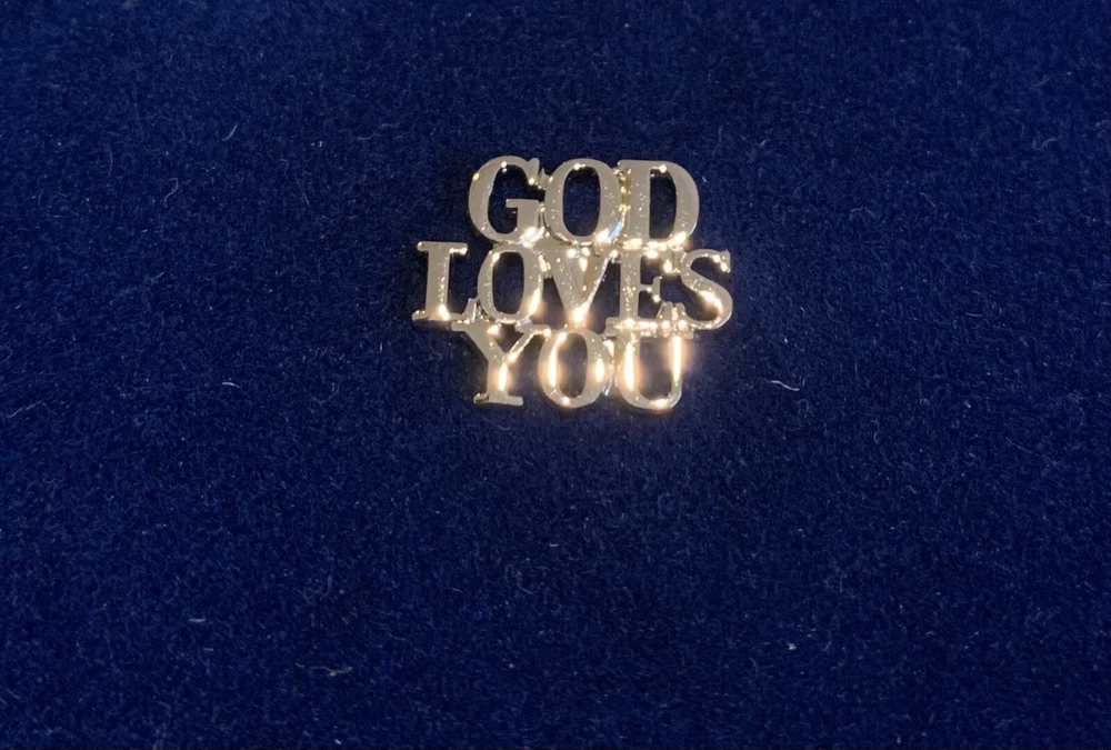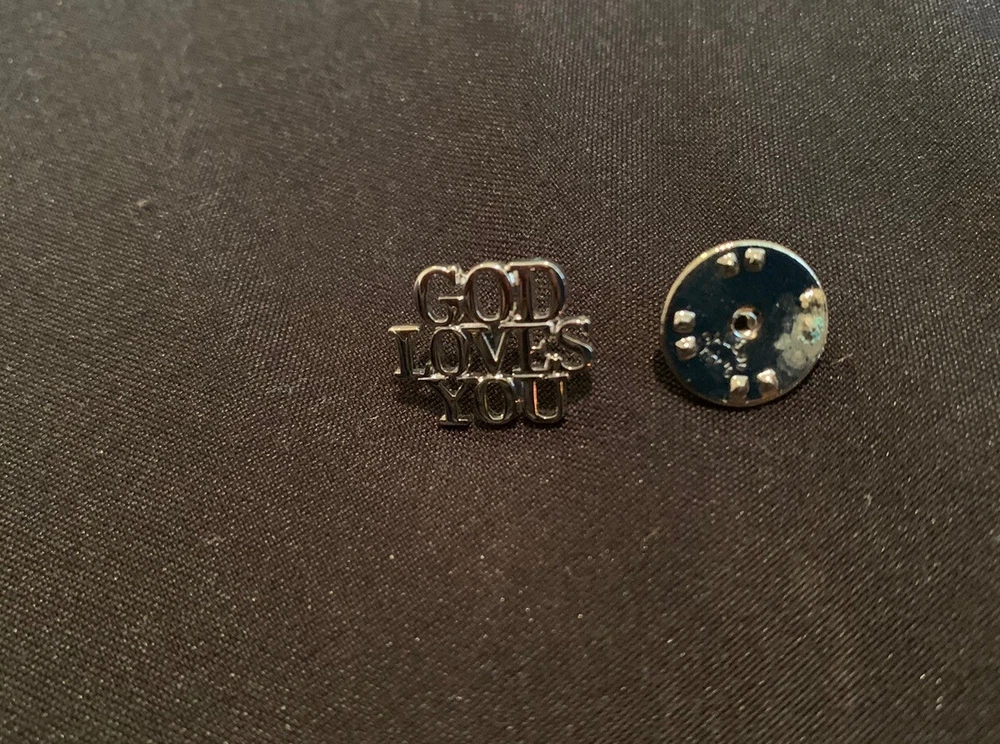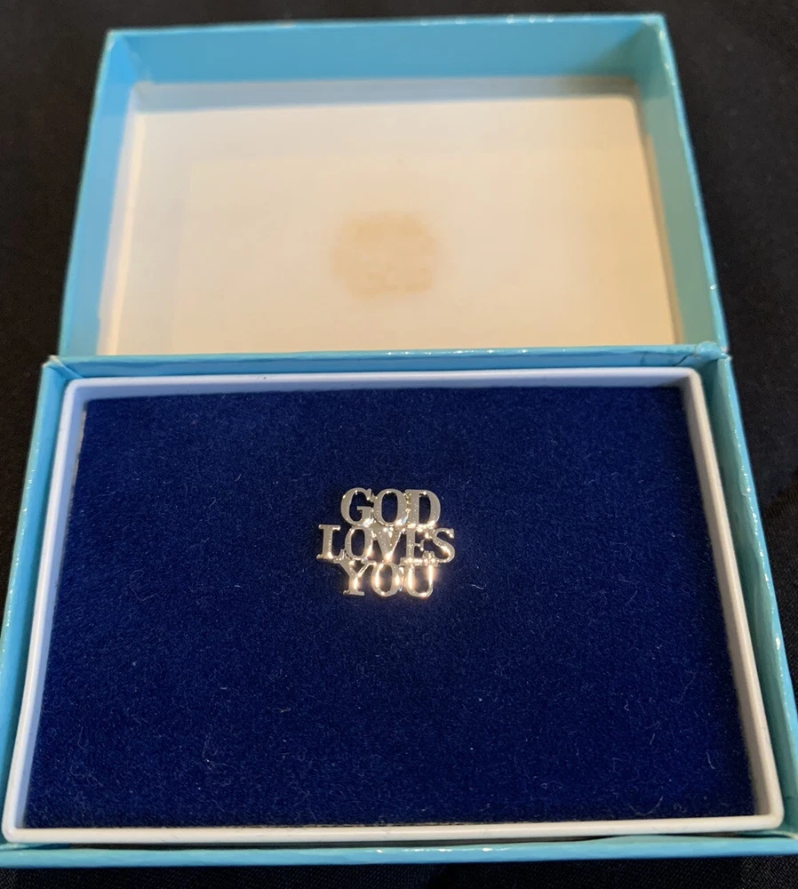Vtg Tiffany & Co GOD LOVES YOU Sterling Silver Christian Lapel Pin