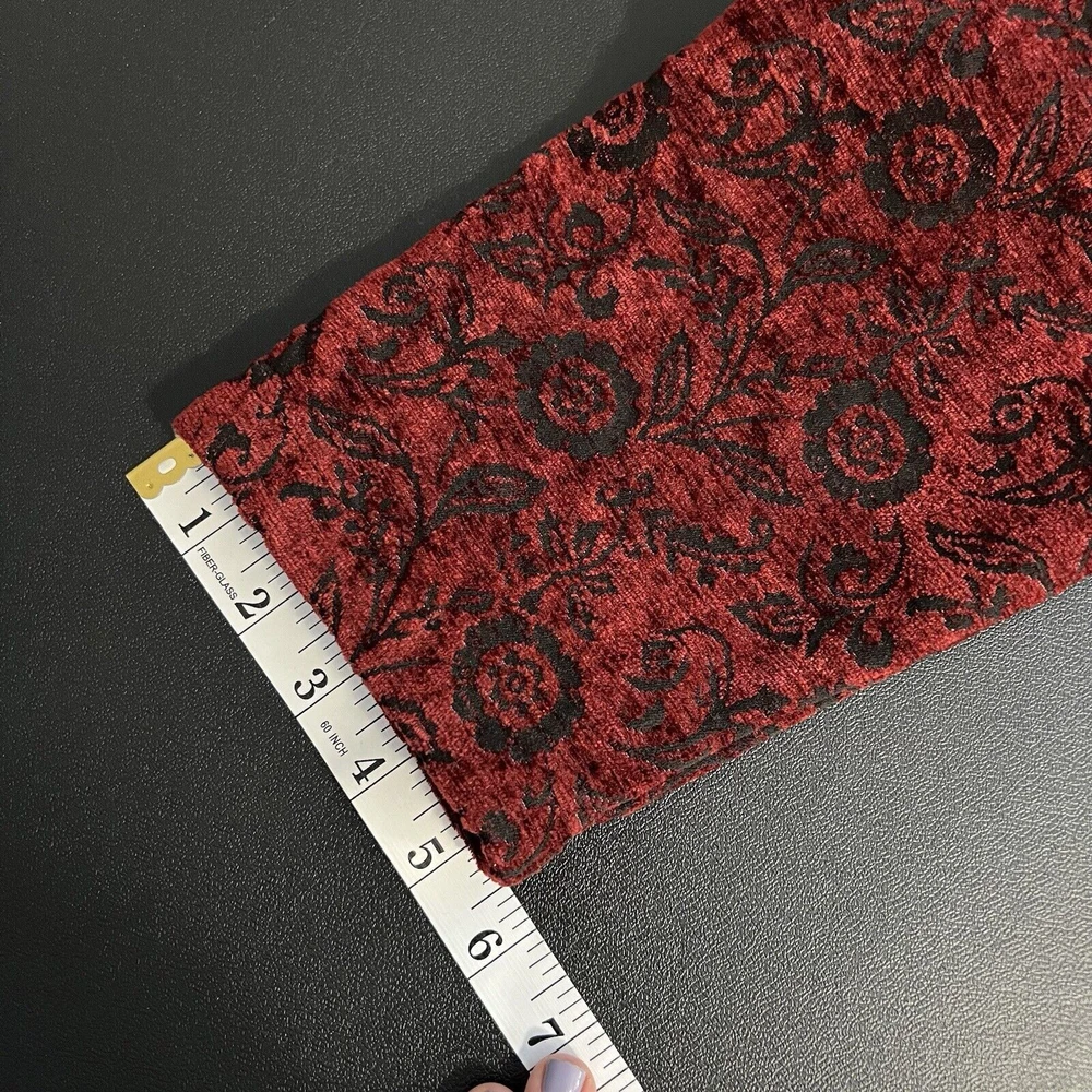 Vintage Touch of Blue floral tapestry button-up jacket - women's size Medium. Deep red and black floral long sleeve. Semi-cropped boxy cut. Beautiful silver floral buttons. Made in USA. Made from a blend of acrylic, polyester, and cotton material. Made in the USA. Measurements in photos. Please review as vintage clothing can differ from today's sizes. Good used condition. No holes or stains. There is a light spot of wear on the front edge between 2 of the buttons, shown in photos. Please see the photos for more condition and item details.