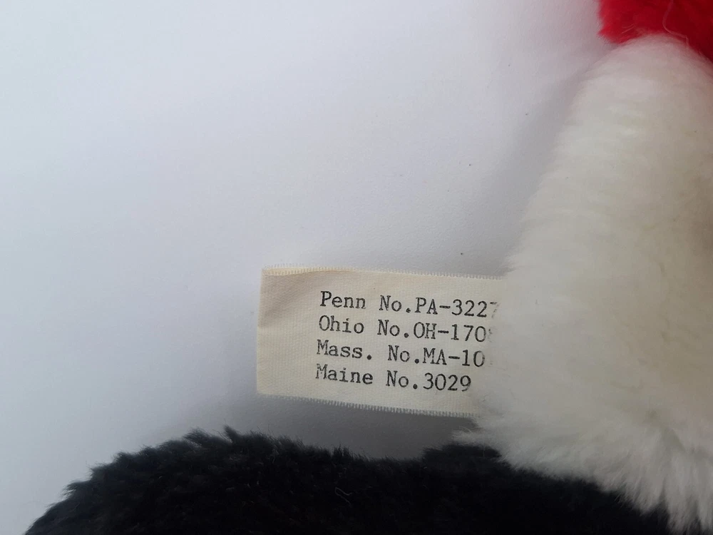 Character Family:Panda BearType:plush stockingOccasion:ChristmasSize:Medium (14-24 in)Animal:panda bearRecommended Age Range:newborn+Color:Red black & WhiteUPC:n/aYear:1990Brand:unionsignFeatures:Retired, Washablegtin13:n/aAge Level:1-2 Years, 3-4 Years, 4-7, 8-11 Years