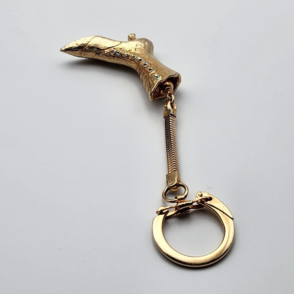Vtg Victorian Ladies Boot AB Crystals Rhinestone Buttons Shoe Gold Tone Keychain