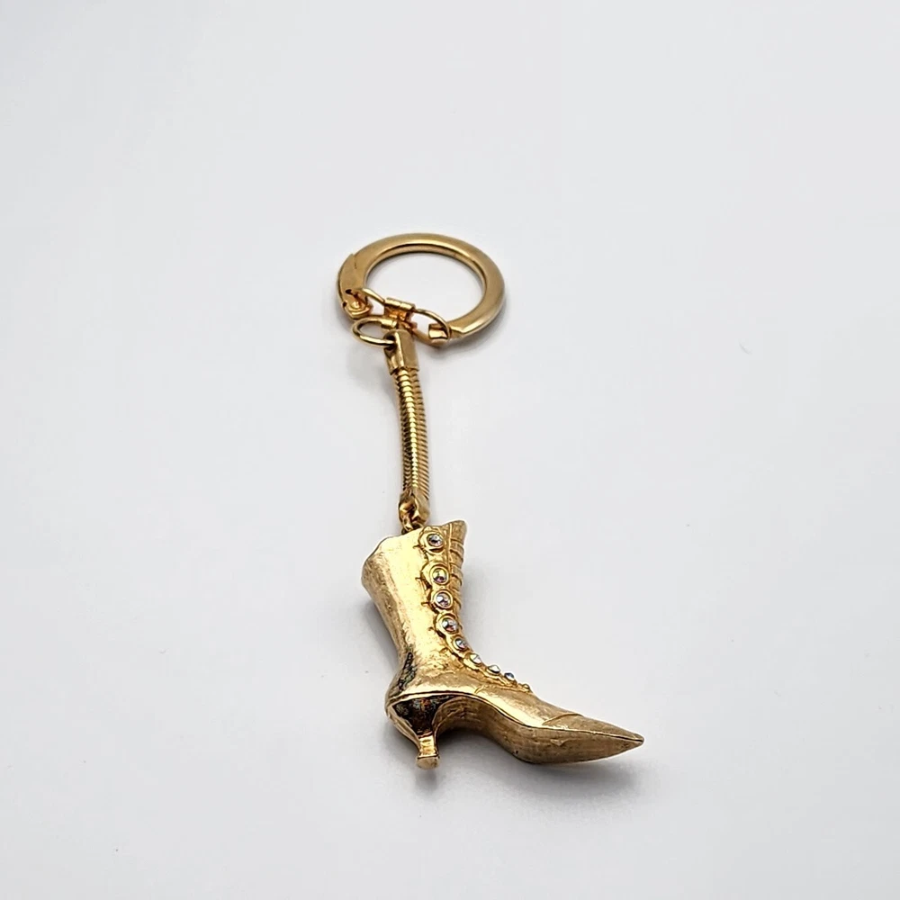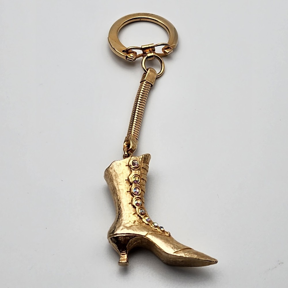 HomeVtg Victorian Ladies Boot Keychain AB Crystals Rhinestone Buttons Shoe Gold Tone