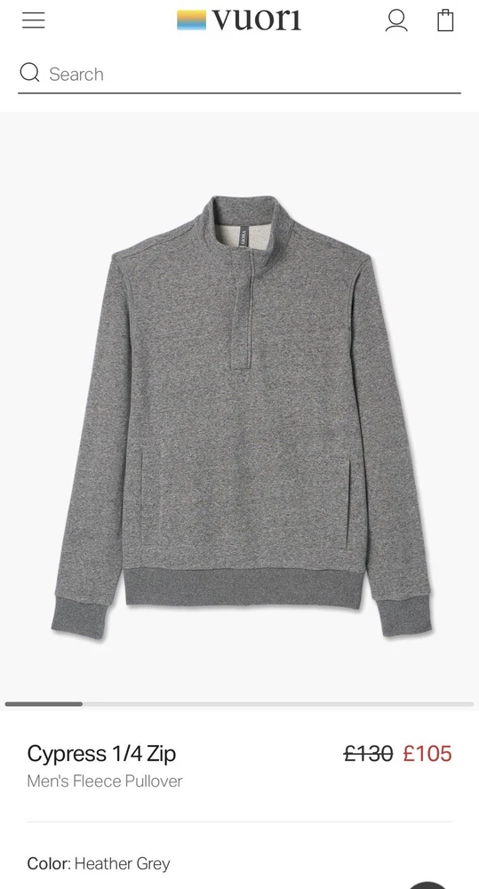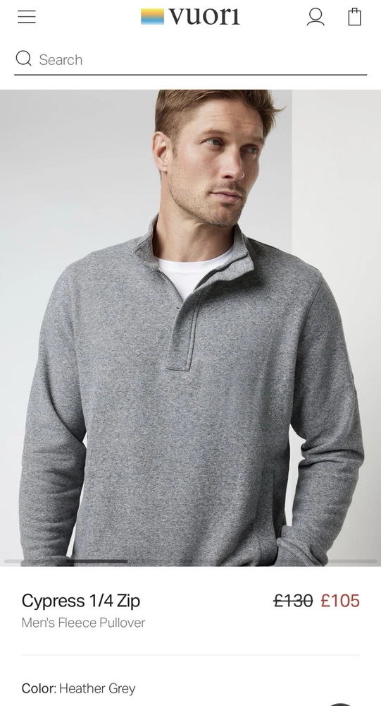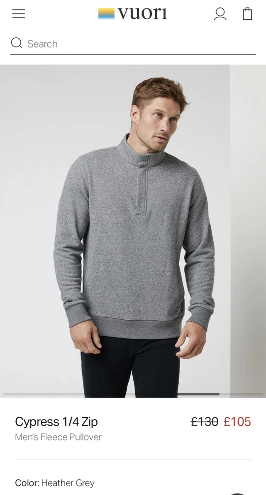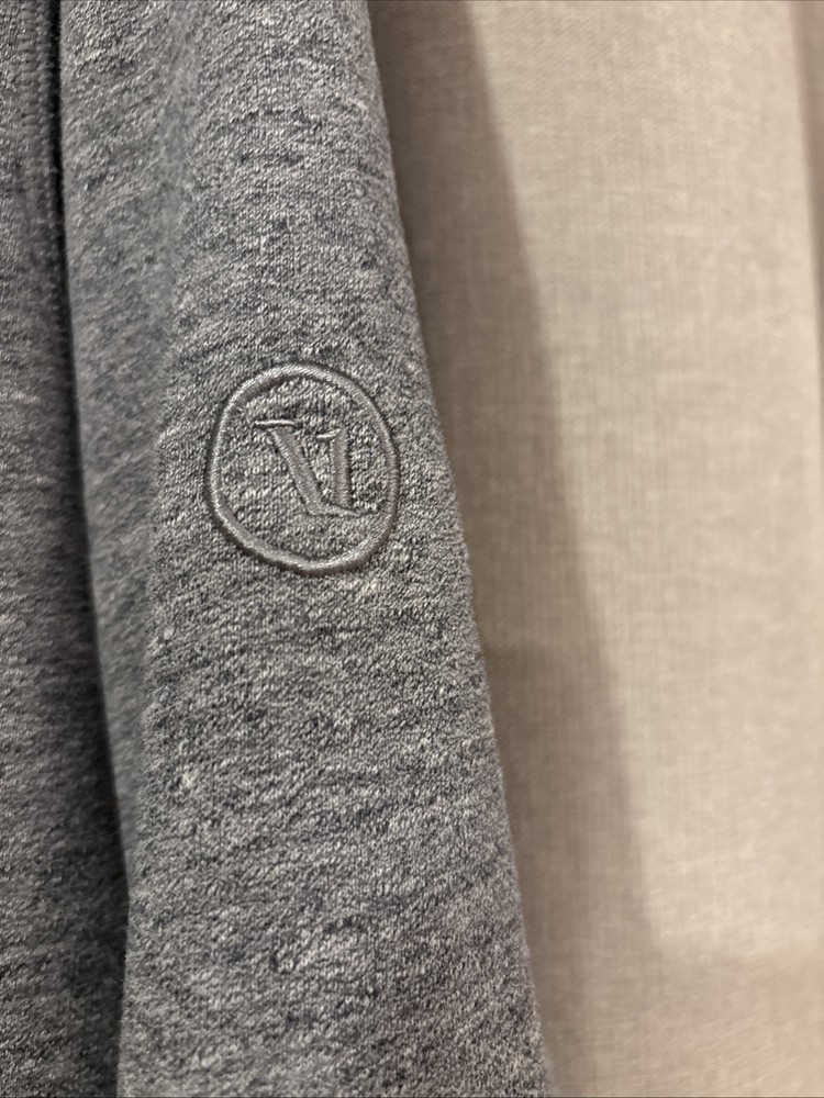 This Vuori Cypress 1/4 Zip Pullover in Light Heather Gray is a versatile activewear top for men. It features a high neck with a stand-up collar, long sleeves, and a 30-inch shirt length. Made from a blended fabric of 70% cotton and 30% polyester, this pullover offers a regular fit and mild compression. The design includes a zipper closure, subtle logo accents, and a solid pattern. Suitable for outdoor activities, sports, and casual wear, this pullover is machine washable and perfect for summer, fall, and spring seasons.