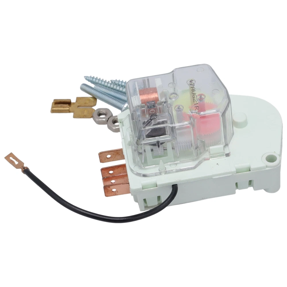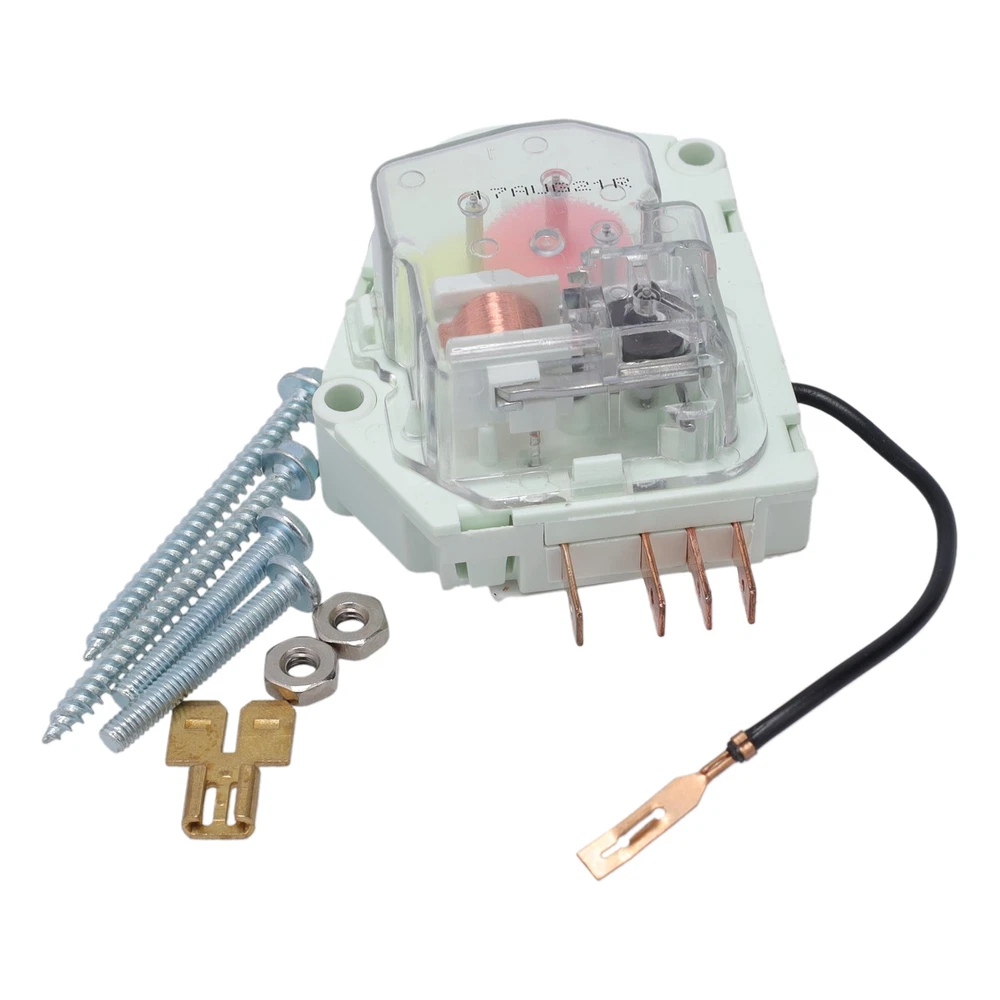 Defrost Timer assembly. Compatible with Whirlpool, Kenmore, and other brands. This is not a Whirlpool OEM product. The Whirlpool brand names and logos are the registered trademarks of their respective owners. Any use of the Whirlpool brand name or model designation for this product is made solely for purposes of demonstrating compatibility. "The trademarks, logos, and service marks (collectively the "Trademarks") displayed herein are registered and unregistered trademarks of , its affiliates, and others. Nothing contained herein should be construed as granting, by implication, estoppel, or otherwise, any license or right to use any trademark displayed herein without the written permission of or such third party that may own the trademark displayed herein. Your misuse of the trademarks displayed herein, or any other content on this website, except as provided herein, is strictly prohibited." Alternate part numbers include AP5985208, 14210016, 2188372, 2188376, 4262692, 4318057, 482489, 548044, 56906, 790077, 850019, 850038, 850343, 850344, 850345, 850609, 850695, 850731, 850845, 850847, 850878, 850879, 851061, 851106, 851200, 851269, 851701, 851971, 943436, 945513, 945514, 978266, 978472, 989280, 989281, CC309, CC904, CC906, D70041-12, FSP482493, GP6, GP9, PS11723171, R0950217, W10740039, W10822278VP, Y0053736, Y0055525, Y0056627, Y0056768, Y0056906, and Y0311209. 120V | 50/60Hz | 8 Hour, 21 Minute | Includes flying lead and mounting screws | Fits model specific side-by-side refrigerators It is important to disconnect your appliance from the power supply before servicing. replacement parts are compatible with Major Brands, but you should always verify fitment with your specific model. We have included a video in the product gallery to help you find your model number and information in the description below. SD products come in packaging.