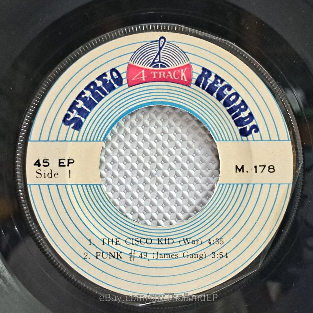 Welcome to The World of ""Thailand Vinyl Records"".Very rare and beutiful picture of cover. Check everyday . This item is for a true 7" single collector. It was printed and sold locally as limited EP back in the early 70's. Only few copies were spread outside Thailand. Most professional record collectors know that it is scarce nowadays and is absolutely a collector's item. If you know a UK magazine called RECORD COLLECTOR then you must have read many articles mentioning THAILAND EP and this is it !!! Here is your chance to own one-of-a-kind piece of Asian's 7" single history. Description Records !!! DETAIL SONG and ARTIST !!! Side A: A1 = War - The Cisco Kid / A2 = James Gang - Funk #49 Side B: B1 = Rare Earth - Hey Big Brother / B2 = Bloodrock - Children' Heritage Label&Catalogue number : : M178 Country of release : THAILAND Condition (Sleeve/Disc) : VG / VG+ and pls see picture too. Shipping I am seller in Thailand not USA.So I can not ship 4$ as policy pls understand this real rate from oversea . Price for shipping(Airmail )&Packaging to worldwide only US 14.99 USD .Except Asia and JAPAN only 14.99 USD. You can save cost for combine shipping only 3 USD$ per each. 2xEP=17.99 USD$ , 3xEP=20.99 USD$ . My package very safety by big cardboard don't worry about your's EP/PS/LP. Time delivered 21-45 days . ***All item : have tracking system no need add money*** **For normal shipping (Airmail).Time delivery to ITALY maybe use 1-2 Months, France use 1-2 Months.But Don't worry item will arrived to you sure!!.For fastest and High value you can use Express Mail Service cost for1 EP =39 USD.EP will arrived to you within 5-7 Days. ***All shipment have fully tracking system *** Payment PAYMENT : I accept the follow payment by eBay managed , . My ID eBay provide by eBay .Account will be provide at the end auction.Charges to be covered by winner. If you have question pls email to me anytime i can answer immediatly. I have many EP,PS 7" Thailand Pls Click => View seller's other items Check my feedback , I care and honest all customer.I welcome 0 feedback but contact me first if you will bidding. Good Luck !!!! and Enjoy . 45 RPM / EP/ LP Grading Scale: Mint /NM/ Excellent(VG++) /VG+/ VG /G+ /Good(G) / Fair / Poor / Bad (According Record Collector Magazine (UK)) LOT149-17M178