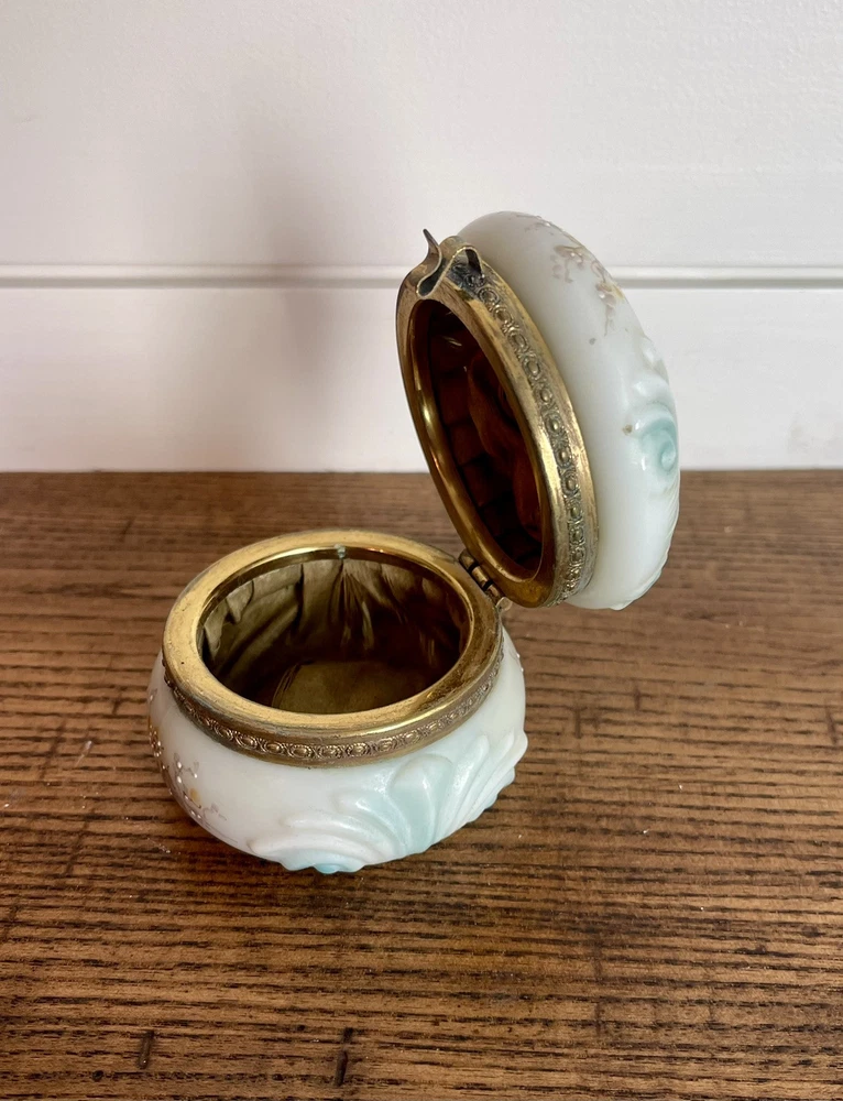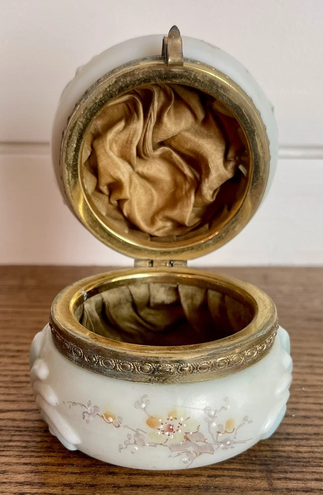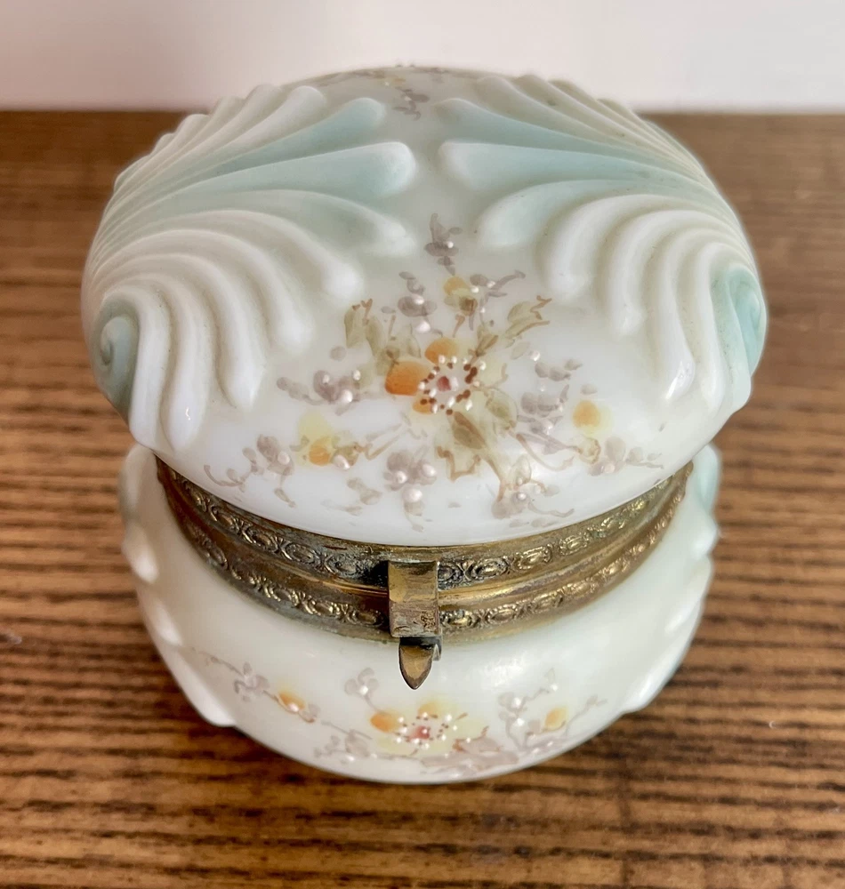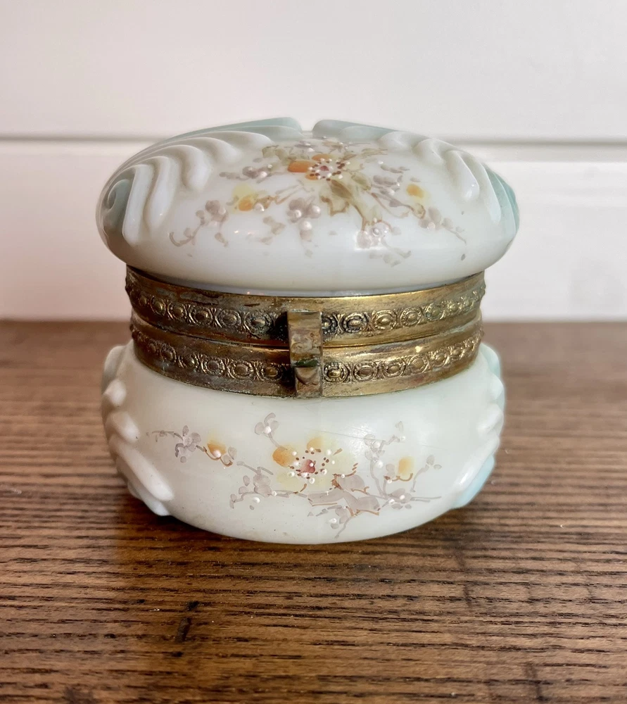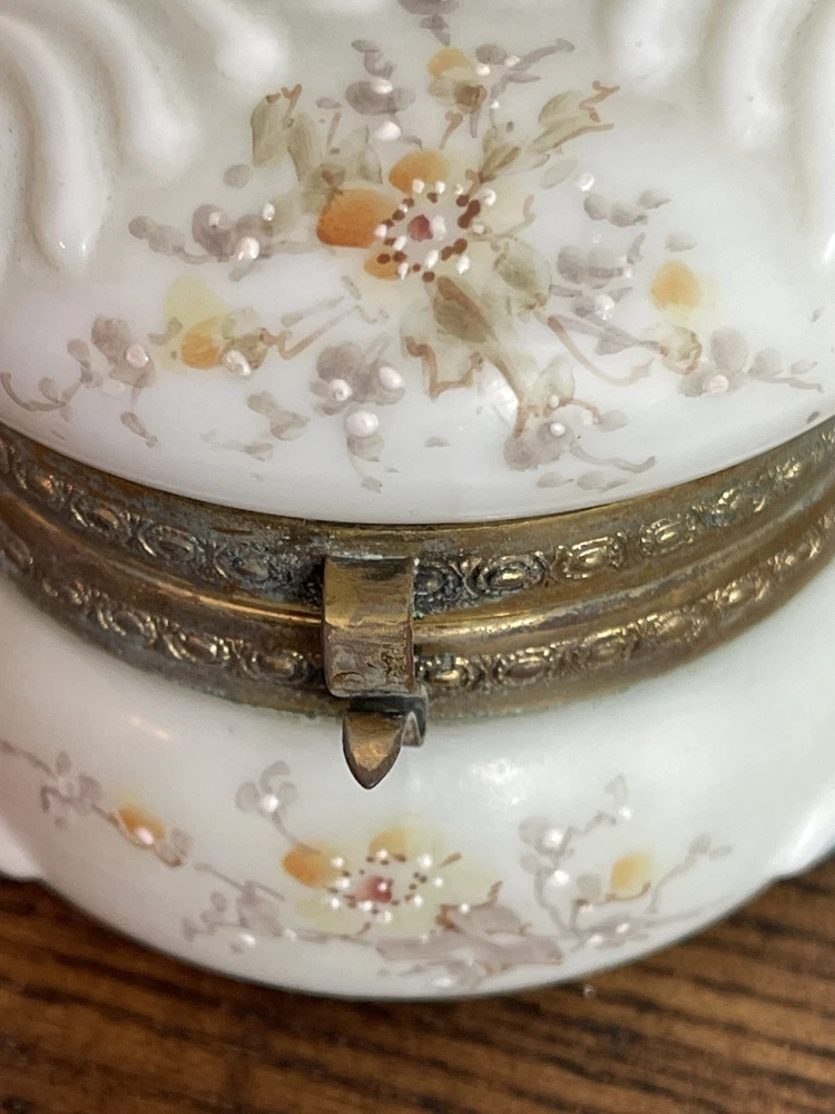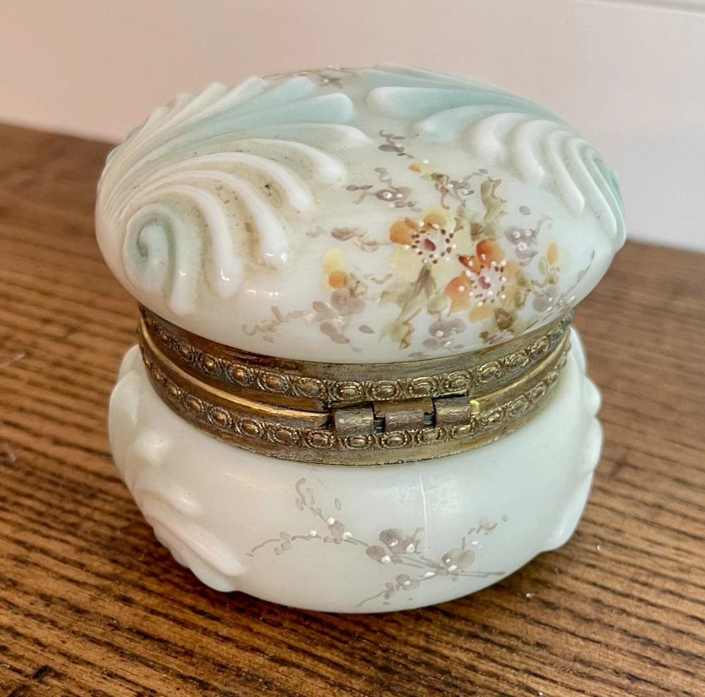 WAVECREST- Antique Victorian Dresser Box-Hand Painted with Original Silk Lining-Signed Absolutely beautiful condition! 3.5" round x 2 3/8" tall...signed on bottom