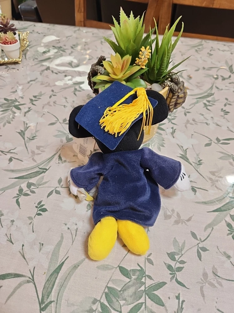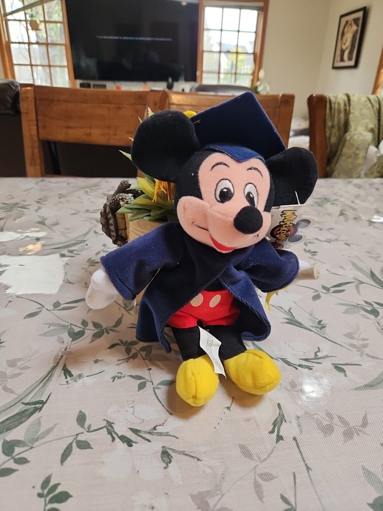 This adorable Mickey Mouse plush is perfect for any Disney-loving grad! The 9" bean bag design is super soft and huggable, and the graduation cap detail makes it extra special. Still mint condition with tags—great quality and a fun keepsake to celebrate the big achievement. A must-have for Disney fans!