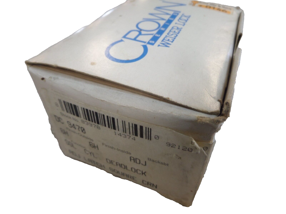 Weiser Crown DC9470US6H Single Cylinder Deadbolt Weiser Crown DC9470US6H single cylinder deadbolt. The Crown series was Weiser's standard security deadbolt. Antique Brass Highlighted finish. Weiser 5 pin WR5 keyway cylinder. Latch is adjustable 2 3/8" or 2 3/4" backset with a square face. Fits in 1 1/2" or 2 1/8" hole. This is the classic Weiser design made in the USA and is no longer available. Kwikset now owns what is left of Weiser and the Weiser available now is of Kwikset design and imported. Includes 2 keys, latch, strike plate, mounting screws and instructions/template. Check out our Ebay store to see all the items we sell!