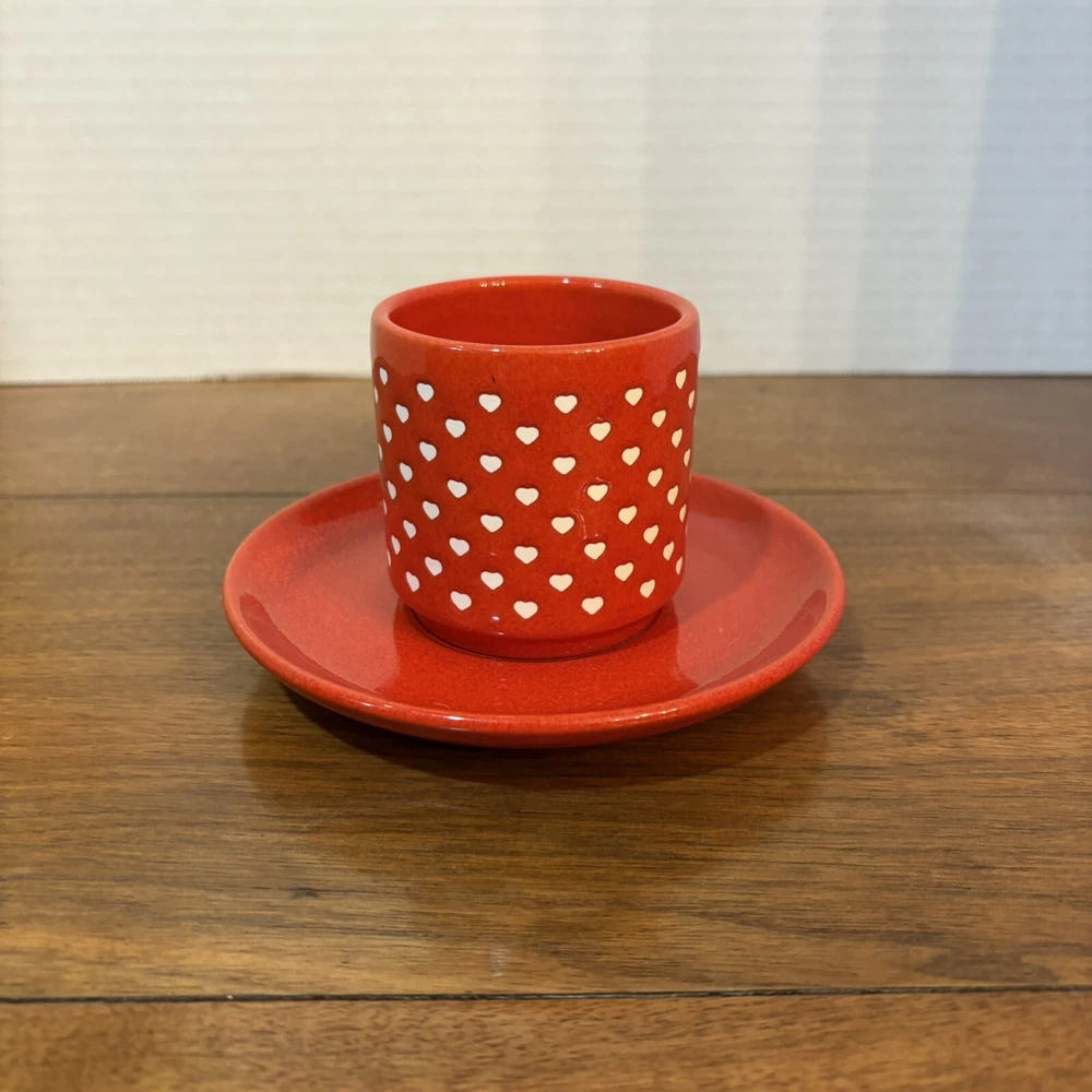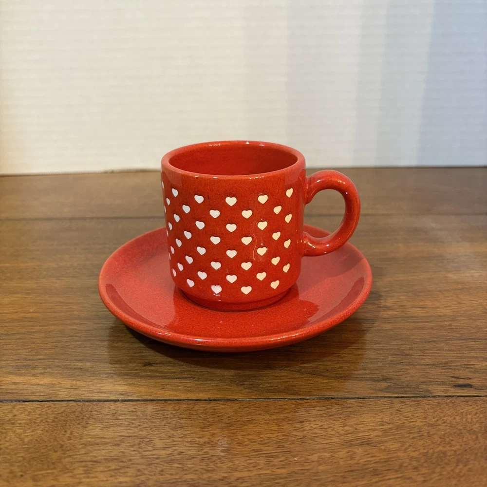 This vintage Waechtersbach Red Valentine Heart Coffee Cup and Saucer set from the 1980s features an embossed heart pattern, making it perfect for Valentine's Day. No chips or cracks. Experienced shipper of fragile items.