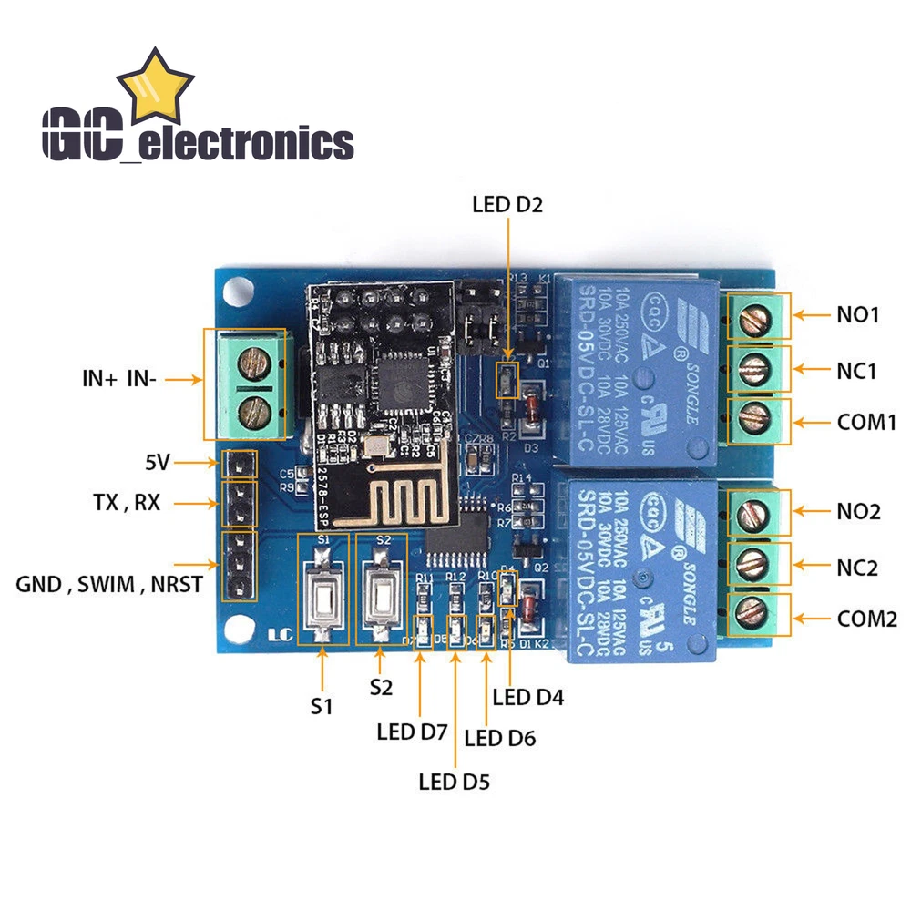 Store Categories Store Categories eBay Motor Fashion Books, Movies & Music Electronics Collectibles & Art Home & Garden Sporting Goods Toys & Hobbies Business & Industrial Health & Beauty Other Product View Detail 1. Description: The 5V dual WiFi relay module uses ESP-01 as the WiFi module and is compatible with 8 bit MCU chips. Only a simple configuration process can realize the wireless control of the 2 way relay by using the mobile phone APP in the lan. 2. Function: >. Onboard high performance microprocessor STM8S103 and ESP-01 WiFi modules. >. The module has 2 operating modes of work: Mode 1: mobile phone is directly mounted on WiFi module. Mode 2: mobile phones and WiFi modules are equipped on routers simultaneously Additional function: it can also be used as USB relay when ESP-01 is pulled out. >.Transmission distance: In an open environment, the maximum stable transmission distance is 100M when the mobile phone is mounted on the WiFi module. >. When the WiFi module and mobile phone are carried on the router at the same time, the transmission distance depends on the signal strength of the router. >. The use of Smartcongig technology in the mobile phone on the APP ESP-01 WiFi module to complete the account and password configuration, configured username and password memory function. >. Onboard 5V, 10A//250V AC 10A//30V DC relay, which can be continuously pulled for100 thousand times, has diode discharge protection, short response time. >. Board mode selection and real time working status indicator. >. Reserved UART debug interface and STM8 SWIM program download interface. >. Board size: 59*40mm. 3. Operating instructions: Prepare the following tools before use: 5V/1A power adapter and APP “ESP Touch--Demo” Step 1: the 5V/1A power adapter, the positive and negative poles of the power are connected to IN+ and IN- of the module respectively. Step 2: Android mobile terminal installation APP''Esp Touch--Dem ", for the first use of work mode 2 to ESP-01 module configuration WiFi account number and password. Step 3: Android mobile terminal to install APP "Easy TCP--20", TCP transmission tool, used to send relay control instructions. Click on "SWITCH", and then enter the 2 relay control instructions and names and contents (instruction form HEX) by the gray blocks in the interface. 4. Instructions for use of two operating modes and additional function: Operating mode 1 (mobile phone mounted on the ESP-01 module) instructions: >. Plug in the ESP-01 module, the module power up. About 4 seconds later, the green light changed from extinction to 2 seconds flashing. Description configuration completed. >. AP hotspot signal sent by mobile phone connected to ESP--01 module. >. Opens "EasyTCP--20" APP, and clicks "CONNECT"". After the connection is successful, the green light flashes slowly from 2 seconds to normal. Click on the gray box to send instructions to control the switch of the relay. Operating mode 2(mobile phones and WiFi modules are equipped on routers simultaneously) Feedback Payment Shipment About us Feedback We appreciate positive feedback . we always try our best to service our customers . so if you have ant question ,PLEASE DON’T HESITATE TO TELL US, we are always here to offer help . Payment We prefer PayPal .For purchasing multiple items , please contact us for a combined invoice . generally we would like to receive payment thin 48 hours if . Shipment We provide airmail service with good package . The items will be shipped within the nest 2 business days after we received the payment . when you buy multiple items ,your shipping cost will be combined with discount . SHIPPING TIME (weekends/holidays excluded) Country Name Shipping Time Country Name Shipping Time USA/Canada 10 -15d Spanish/Portugue 10-25d East/South Asia 10 -15d France/West Asia 10-25d United Kingdom 10 -20d Italy 10-30d Australia/New Zealand 10 -15d West Asia/Middle East 15-25d Most Country of West/North Europe 10-20d South America and Africa 15-30d East /Middle Europe/Russia 10-25d About us NEW, GOOD QUALITY, ORIGINAL PACKAGE LARGE STORE AND THE LOWEST PRICE NO-QUESTION-REFUND, FOR LARGE QUANTITY ,OFFER BETTER PRICE, ORIGINAL PACKING(TAPE REEL/TUBE/TRAY) We specialize in electronic components . ICs, Capacitors, Diodes, Resistors, LEDs, Transistors, and so on. Especially in Hard To Find Parts . we only sell NEW , ORIGINAL parts . please buy with confidence .We offer NO-QUESTION-REFUND go to my store