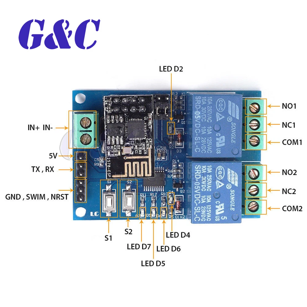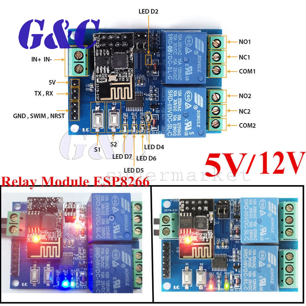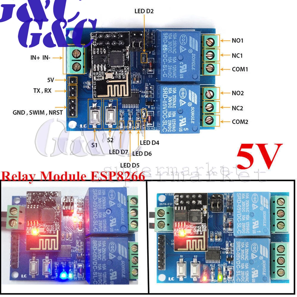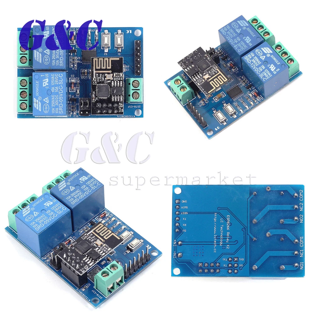 Store Categories Store Categories Electronic Components&tool Magnet Welding tool Thermal Paste Solder Paste Soldering Wire Spot Welders Socket Connector Electronic tools Engraver Pen Repair Watch tool Rain Gauge LED Light LED Lamp Base LED String LED Light Bulb LED DIP Light LED SMD Light Diodes/Rectifiers Capacitor/Resistor Switch other ICs other Arduino Module Arduino Nodemcu ESP series WEMOS D1 Mega Motor Drive Module other Module & Development Board Amplifier Signal Generator/Transmitter USB Module Development Board Power Module?DC-DC and DC-AC? Clock Module Bluetooth Module Breadboard Digital Thermostat Controller LCD/LED/TFT Disply Logic board WIFI/Wireless Module Server Module Relay Sensor Voice Module Voltage Regulator other Meter Current Voltage meter Tester Multimeter Analysis�Instruments other Raspberry/Orange Pi Orange Pi Expansion Board Raspberry Pi other 3D Printers & Accessories Bearing Jaw Shaft Pump other Flight Control APM Drone accessories RC Drone other Auto Parts & Accessories Grille Logo Car Sun visor Car Lights Car DVRs GPS & Accessories Car Electronics Parts/Accessor Car Audio & Monitor Car Alarm & Security Diagnostic Scan Tool Car Repair & Maintenance Electric Scooters Car Cradles & Mounts Motor other Fashion/Beauty Beauty Beauty tools Makeup brush Earring/Quartz watches Jewelry Baby Products other Fashion/Health Maternal and Child Health Healthy Medical Product Fitness Smart wristband Oral health Blood Pressure Monitor Otoscope Massager Humidity Thermometer other Smart Elecyronics Tracker/Anti Lost Device Alarm System Electric Charging tool Solar Power Cables|Connectors|PCB|kits Dupont Wire Adapter USB Socket Converter USB Converter Cable DIY Kit HDMI Computers,TV Home Audio Electr Keyboard Mouse Heatsink Cooling fan Screen/Media player Wireless Receiver Devices TV Box Networking�Adapters&Antennas Games Accessories Consumer Electronics Camera Headset Power Bank Microphone Speaker Radio Smart Switch PIR Sensor Memory Fingerprint Lock Smart Watch Clock Electronic scale Humidifier Steam brush Projector Flashlight other Motorcycles & Accessories Bicycle Motorcycle other Toys Magic Cube Playing Card Mask Gyro/Hand Spinner RC Cars Other other Battery Lithium battery PCB board lithium/Li-ion battery Battery Case other Sports & Outdoor Fishing&Hunting SOS kit Camping light other Other Product View Detail 1. Description: The 5V dual WiFi relay module uses ESP-01 as the WiFi module and is compatible with 8 bit MCU chips. Only a simple configuration process can realize the wireless control of the 2 way relay by using the mobile phone APP in the lan. 2. Function: >. Onboard high performance microprocessor STM8S103 and ESP-01 WiFi modules. >. The module has 2 operating modes of work: Mode 1: mobile phone is directly mounted on WiFi module. Mode 2: mobile phones and WiFi modules are equipped on routers simultaneously Additional function: it can also be used as USB relay when ESP-01 is pulled out. >.Transmission distance: In an open environment, the maximum stable transmission distance is 100M when the mobile phone is mounted on the WiFi module. >. When the WiFi module and mobile phone are carried on the router at the same time, the transmission distance depends on the signal strength of the router. >. The use of Smartcongig technology in the mobile phone on the APP ESP-01 WiFi module to complete the account and password configuration, configured username and password memory function. >. Onboard 5V, 10A//250V AC 10A//30V DC relay, which can be continuously pulled for100 thousand times, has diode discharge protection, short response time. >. Board mode selection and real time working status indicator. >. Reserved UART debug interface and STM8 SWIM program download interface. >. Board size: 59*40mm. 3. Operating instructions: Prepare the following tools before use: 5V/1A power adapter and APP “ESP Touch--Demo” Step 1: the 5V/1A power adapter, the positive and negative poles of the power are connected to IN+ and IN- of the module respectively. Step 2: Android mobile terminal installation APP''Esp Touch--Dem ", for the first use of work mode 2 to ESP-01 module configuration WiFi account number and password. Step 3: Android mobile terminal to install APP "Easy TCP--20", TCP transmission tool, used to send relay control instructions. Click on "SWITCH", and then enter the 2 relay control instructions and names and contents (instruction form HEX) by the gray blocks in the interface. 4. Instructions for use of two operating modes and additional function: Operating mode 1 (mobile phone mounted on the ESP-01 module) instructions: >. Plug in the ESP-01 module, the module power up. About 4 seconds later, the green light changed from extinction to 2 seconds flashing. Description configuration completed. >. AP hotspot signal sent by mobile phone connected to ESP--01 module. >. Opens "EasyTCP--20" APP, and clicks "CONNECT"". After the connection is successful, the green light flashes slowly from 2 seconds to normal. Click on the gray box to send instructions to control the switch of the relay. Operating mode 2(mobile phones and WiFi modules are equipped on routers simultaneously) Feedback Payment Shipment About us Feedback We appreciate positive feedback . we always try our best to service our customers . so if you have ant question ,PLEASE DON’T HESITATE TO TELL US, we are always here to offer help . Payment We prefer PayPal .For purchasing multiple items , please contact us for a combined invoice . generally we would like to receive payment thin 48 hours if . Shipment We provide airmail service with good package . The items will be shipped within the nest 2 business days after we received the payment . when you buy multiple items ,your shipping cost will be combined with discount . SHIPPING TIME (weekends/holidays excluded) Country Name Shipping Time Country Name Shipping Time USA/Canada 10 -15d Spanish/Portugue 10-25d East/South Asia 10 -15d France/West Asia 10-25d United Kingdom