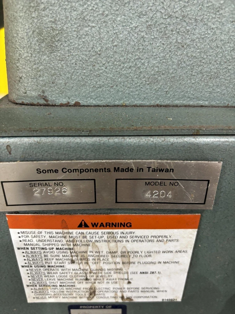 Label Unit WILTON BELT & DISK MODEL #4204 SANDER: STOCK #20869 SERIAL ..... 27926 MODEL ...... 4204