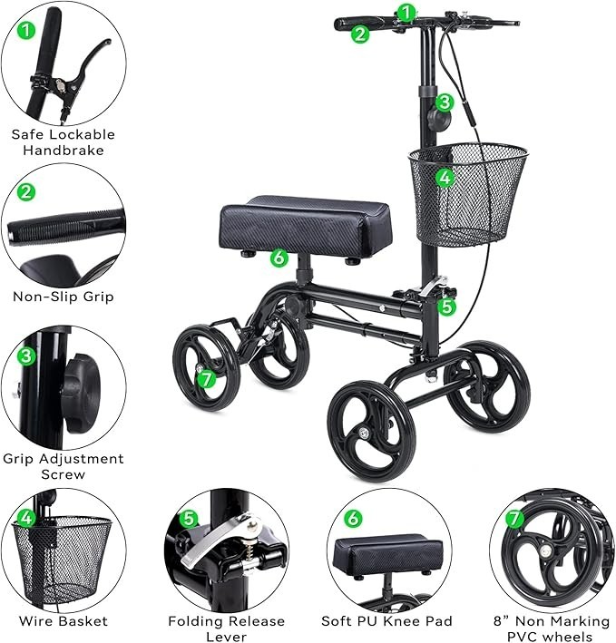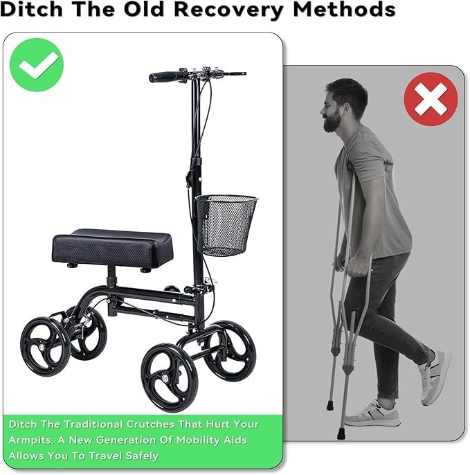This knee scooter is a game-changer for mobility recovery! The smooth steering and dual brakes make it super stable, while the handy basket keeps essentials within reach. Lightweight yet sturdy, it’s perfect for getting around comfortably. Highly recommend for anyone needing reliable support post-injury!