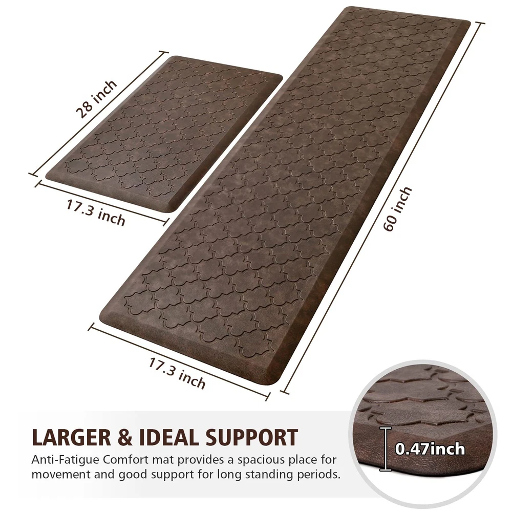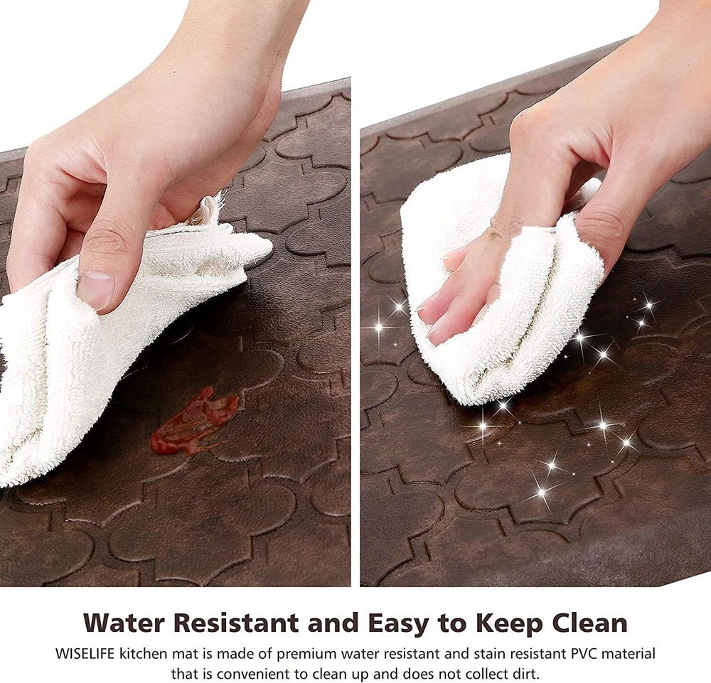 WISELIFE anti fatigue mat is a perfect combination of beauty and practicality. The charming brown color coordinates with any décor, and the thickness is perfect. Our kitchen rug can help relieve the discomfort caused by daily work in the kitchen or tasks that requires long-term standing. The ergonomic kitchen carpets and rugs helps to relieve pressure and provides superior comfortable support over long periods of time. Features of WISELIFE anti fatigue kitchen mat: ·Beveled, no curled edges and non-slip bottom. ·Waterproof, Stain resistant, and easy to clean. ·Long-lasting durability, ergonomic and comfortable mat. Anti Fatigue Cushioned Mat for Kitchen Comfort Mat for Laundry Room Standing Desk Mat for Office High Quality and Premium Materials The standing floor mat is made of premium PVC and thick foam that is phathalate-free, latex-free and smell-free. This premium alfombras para cocina is constructed with premium strength material to ensure that it will keep shape with extended and heavy use. Unique Beveled Edge The WISELIFE cushioned anti-fatigue mat is designed with a unique beveled edge.The water-resistant top area has an attractive texture and the underside is super non-slip bottom,helpful to prevent tripping & slipping. Cushioned Support The kitchen sink floor mat is made of heavy duty latex material. It provides thickened and cushioned support to help improve circulation and posture and to ensure that you are able to stand comfortably while working in the kitchen or at any work station that needs long-time standing. COMFORTABLE AND THICK: the cushioned kitchen floor mat is made from gel foam and ergonomically engineered to provide comfort; this kitchen runner rugs provides cushioned support to help improve circulation,help relieve discomfort due to long-time standing PREMIUM MATERIALS: the kitchen rugs and mats is made of premium PVC and thick foam that is phathalate-free,latex-free,and smell-free; the mat is constructed with premium strength material to ensure that it will keep shape even with extended and heavy use NON-SLIP BACKING: the anti-fatigue kitchen mat are designed with a beveled edge; its non-slip bottom ensures the mat can keep in place firmly and securely; there is a texture at the water-resistant top area that is helpful to prevent slipping EASY TO CLEAN: the padded kitchen floor mats is easily cleaned when water, stains or oil splashes on the mat; simply wipe off the dirt with a damp cloth or hand-held vacuum as need, and the mat will still look as good as new MULTI-PURPOSE: the standing pad provides an extra large activity area in kitchen, office, or any other high-traffic place; the neutral color matches any décor and it is a great gift for your family if you take good care of your health and well-being NOTE: open kitchen carpet fully place on even, flat, dry floor; water under mat may result in slippage; mat must be placed on dry surface during use