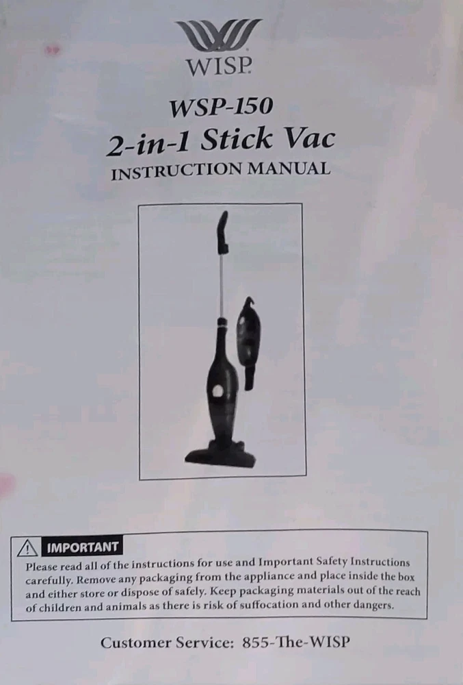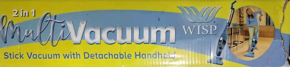 This multi-functional WISP2-in-1 vacuum electric stick vacuum is a must-have for efficient cleaning. It comes with a detachable hand piece that makes it easy to clean hard-to-reach areas. The bagless design ensures that you don't have to worry about constantly changing bags, and the corded feature means that you always have power when you need it. The included accessories include a floor brush that makes cleaning hardwood floors a breeze. With its sleek design and powerful suction, this vacuum cleaner is perfect for any home. New with instructions The box has been tore on 1 end