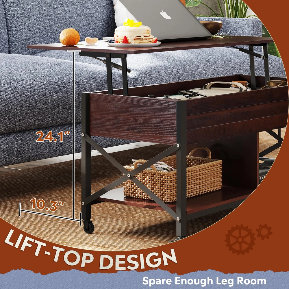 WLIVE Coffee Table, 41.3" Lift Top Coffee Table with 4 Wheels, Hidden Compart...