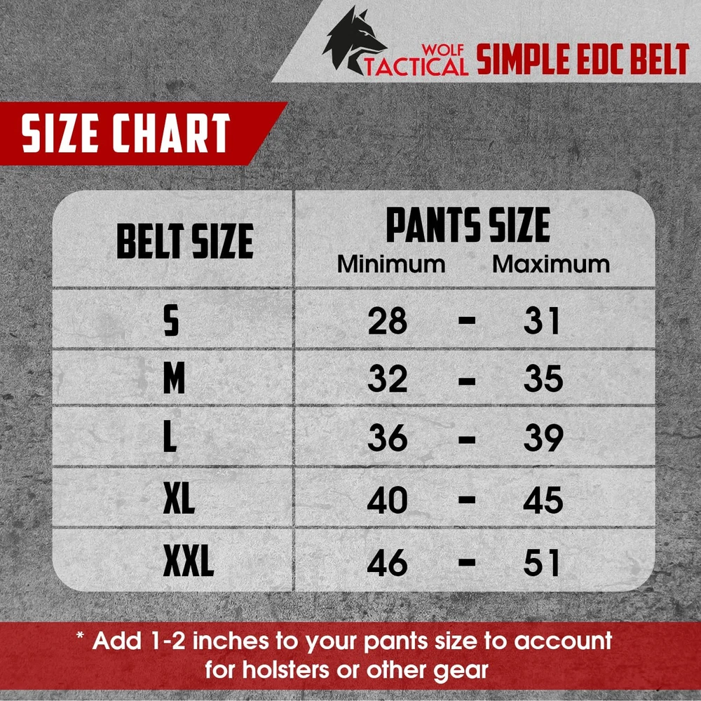 【BUILT FOR CONCEALED CARRY】★ Featuring stiffened 2-ply nylon webbing to support IWB and OWB holsters without rolling over, our EDC belt provides a safe and reliable foundation for CCW. Firmly attach your holster, mags, and pouches whether you’re at the range or carry every day. NO BEND, NO SAG. 【SIMPLE LOW-PROFILE BUCKLE】★ The super slim polymer buckle gives our belt a sleek, low-profile look, and is perfect for AIWB appendix carry. Velcro hook and loop secures the running end to make sure your belt stays cinched and will never slip. Our tactical belt is perfect for military, law enforcement, first responders, hunting, wilderness and outdoor survival. 【PREMIUM HEAVY DUTY MATERIALS】★ Crafted with two layers of rugged, rip-resistant 1.5” nylon webbing reinforced for added rigidity, our gun belt will withstand even the most extreme conditions. Whether you use our belt for everyday carry, tactical training, or outdoor sports, Wolf Tactical ensures that you stay ready. 【COMFORTABLE AND ADJUSTABLE】★ For an EDC belt, comfort and fit are king. Double-layer nylon webbing makes the perfect combination of rigidity and comfort. No holes in the belt means you can fully adjust for a custom fit according to the firearm, gear, and accessories you’re carrying. 【TRUSTED WOLF TACTICAL QUALITY】 ★ Wolf Tactical gear is crafted for those who conquer challenges and never settle for less. Proudly based in the USA, our products embody determination, unity, and an unyielding drive for excellence. Equip yourself with gear designed to empower a lifestyle of resilience and achievement. Shop with confidence.