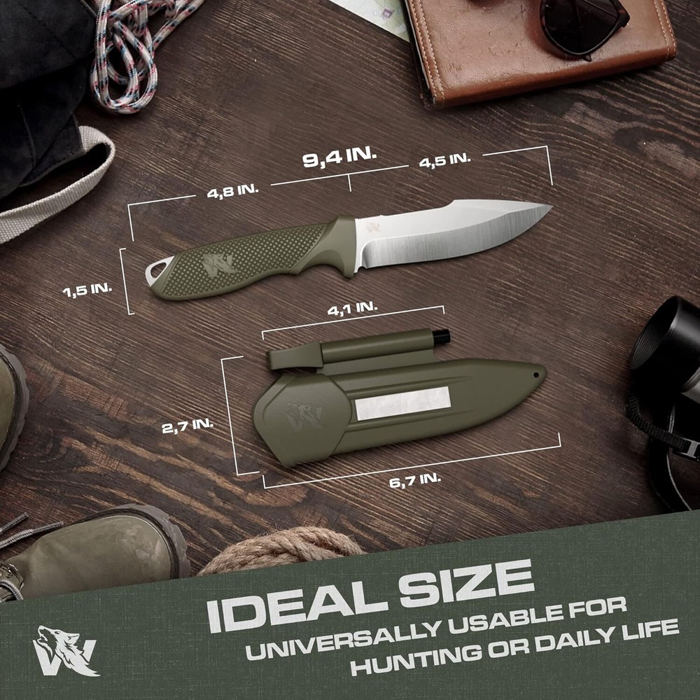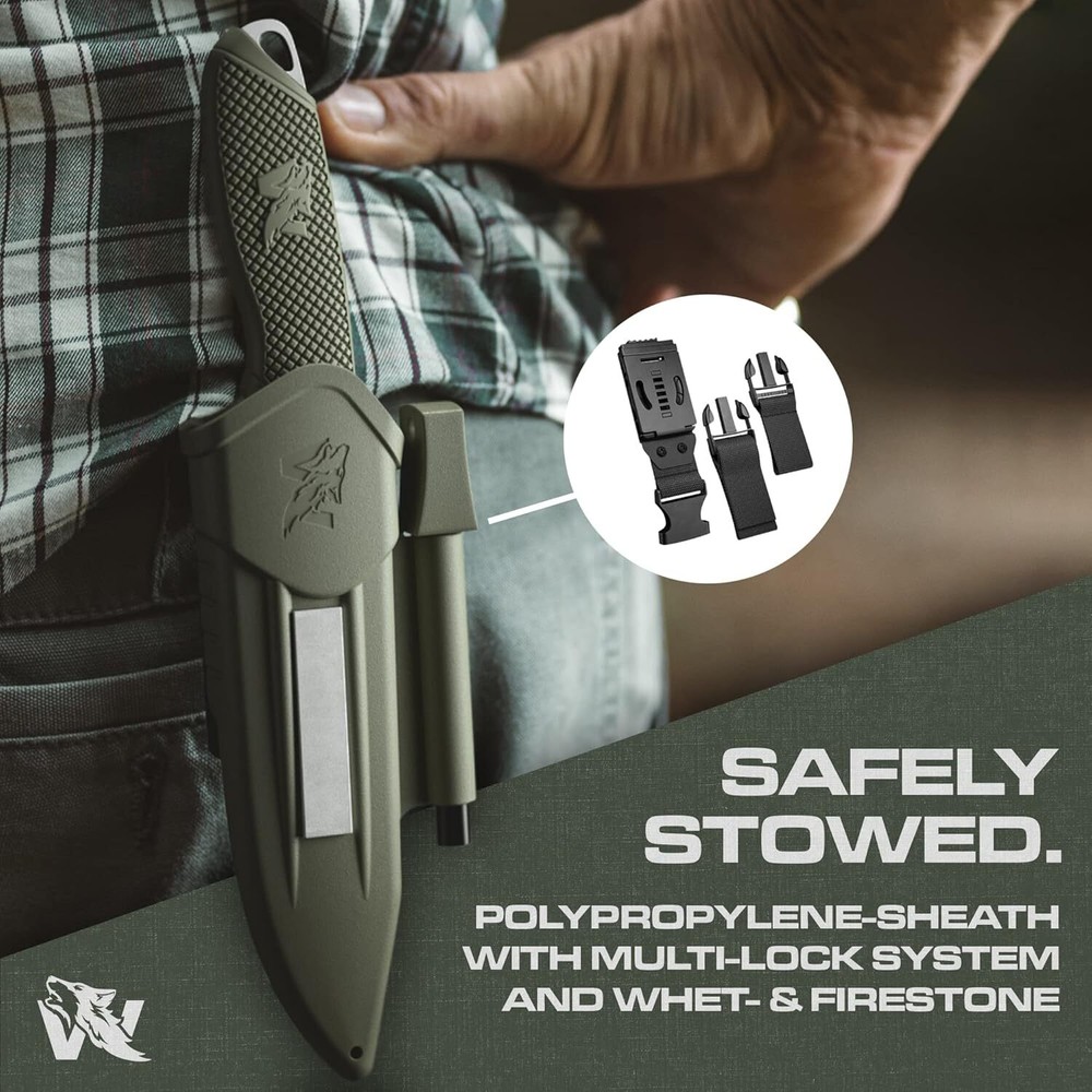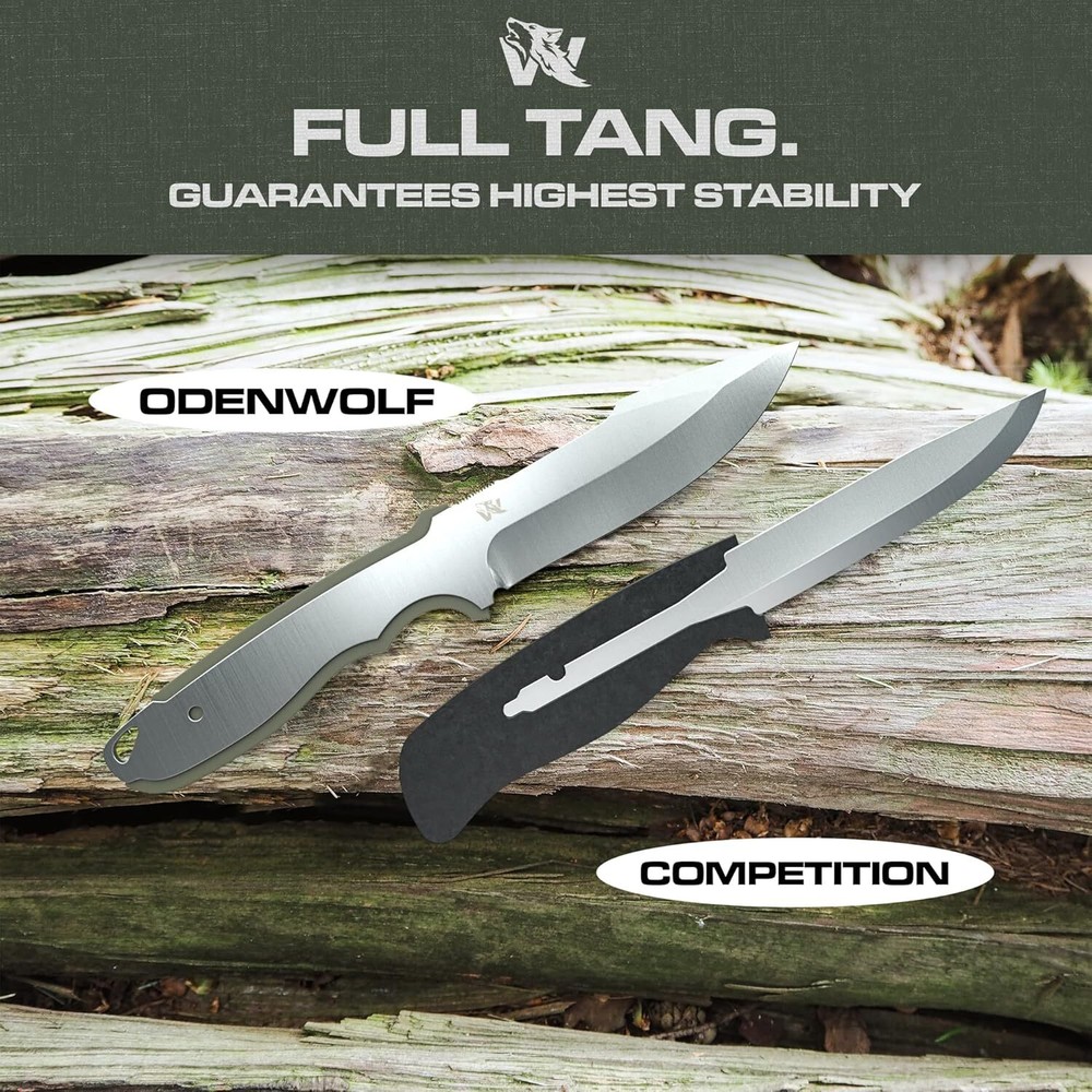 Product Description WOLF-III Full Tang Survival Knife with Fire Starter and Sheath - Stylish Tactical Fixed Blade Knife - Made of D2 Steel - Bushcraft and Camping Knife - With Belt Loop, Plug Lock & Multi Lok HIGH-QUALITY MATERIAL - The fixed blade hunting knife with sheath is made of a single piece of strong D2 steel. The steel is characterized by rust resistance, resilience, and robustness. This makes the full tang knife a faithful companion. FIXED BLADE KNIFE SET - You will receive a comprehensive outdoor set with a strong survival knife with sheath and fire starter. (Tek) Multi-Lok and Belt Loop complete the set. Well prepared for a real outdoor adventure. The perfect gift for a real man. RAZOR-SHARP BLADE - D2 steel is absolutely easy and good to sharpen - even without much practice. Use a grinding angle of min. 40 and max. 25 degrees and your full tang blade is razor-sharp again. Get a fixed knife with above-average durability. OUTDOOR ADVENTURE - The fixed blade knife with sheath should not be missing from any complete hiking, hunting, or camping equipment. The strong sheath and knife make it a reliable partner in any weather, circumstances, and outdoor activities. GERMAN QUALITY STANDARD - At Odenwolf, we want to offer exceptional quality to true outdoor fans or those who want to be. With original Odenwolf products, you can rely on two things unconditionally: Outstanding workmanship and competent support. About Us We are a reputable seller with many years of experience selling on eBay. Our goal is to provide high-quality products and excellent customer service. Shipping Items will be shipped within 1-3 business days when we received payment. (Orders are not processed on weekends & holidays) Tracking information will be sent once item is shipped. Delivery time depends on destination and other factors Item is shipped to ebay address. Leaving correct address can minimize delay. For international shipping and shipping to Guam, Hawaii and Alaska, Please contact us before placing the order. International buyers please note: Import duties, taxes and charges are not included in the item price or shipping charges. These charges are buyer’s responsibility. We will try our best to reduce the risk of the custom duties. Local pick-up is unavailable at the moment. Contact Us We reply any email messages within 1 business / working days(off-duty at weekend). If you do not get a response from us, then please check your junk or spam mailbox. Our Business hours: Mon-Fri 9:00-18:00, UTC/GMT +8 hours. Please contact us either by clicking "contact seller" in the "purchase history" section or simply click "ask a question" at the bottom of this page. If you are unsatisfied with our item or service, please contact us before leaving any feedback. We are committed to resolve all issues in a friendly and satisfactory manner.