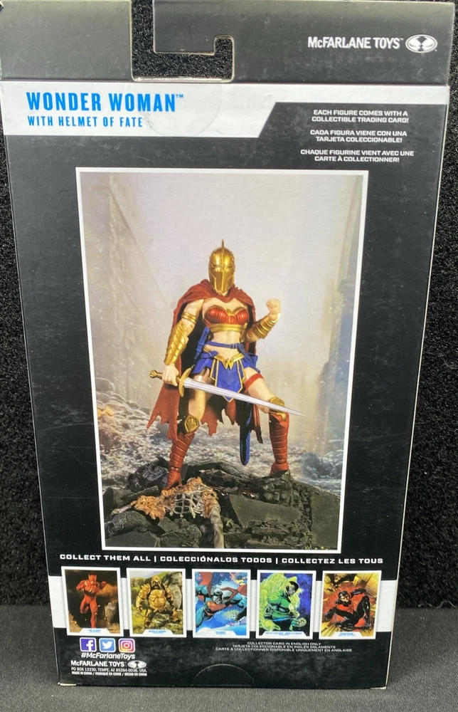 This amazing Wonder Woman Helmet of Fate from McFarlane Toys is a must-have for any fan of the DC Universe. With intricate details and a 1:10 scale, this action figure is perfect for display or play. The helmet comes with a mixed lot of accessories, including a mask, and is packaged in its original unopened box. The figure features Princess Diana and is part of the DC Universe franchise. It was manufactured in 2021 in China and is an original licensed reproduction. The item stands at 7 inches tall and is perfect for collectors or fans of comic book heroes.