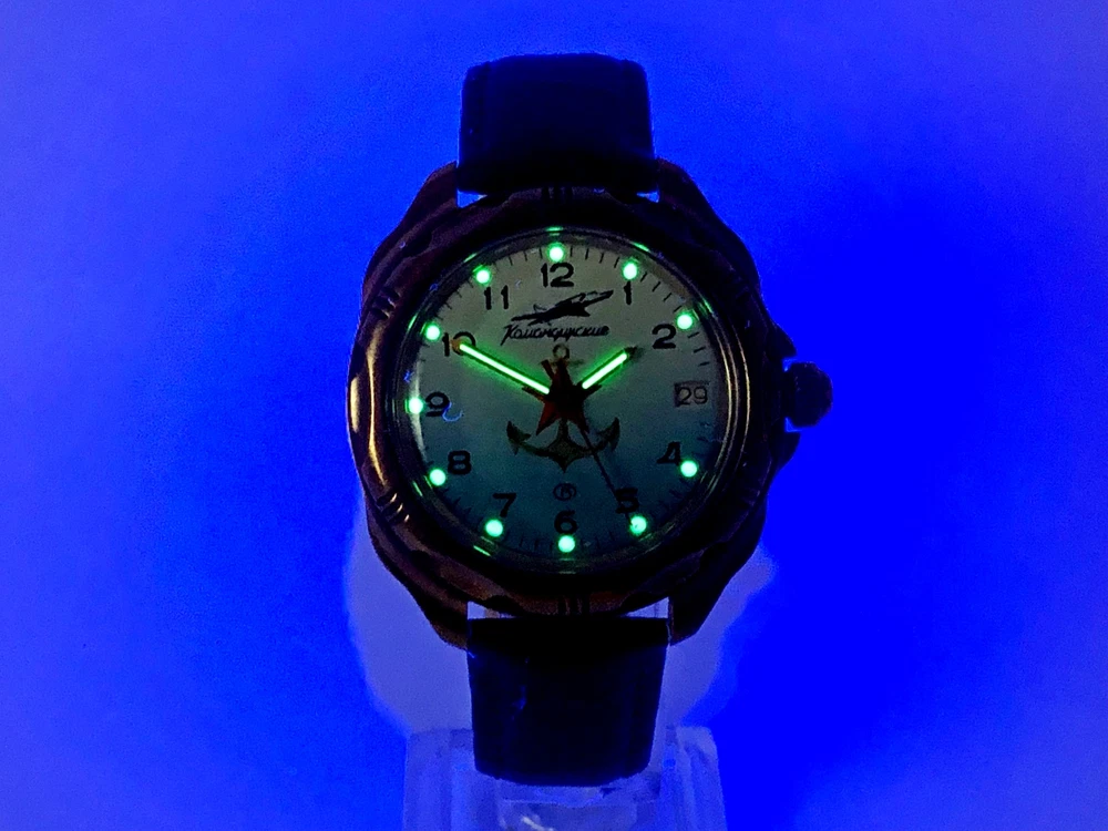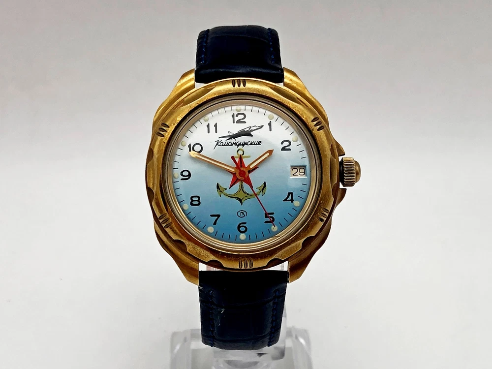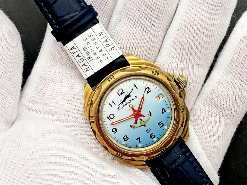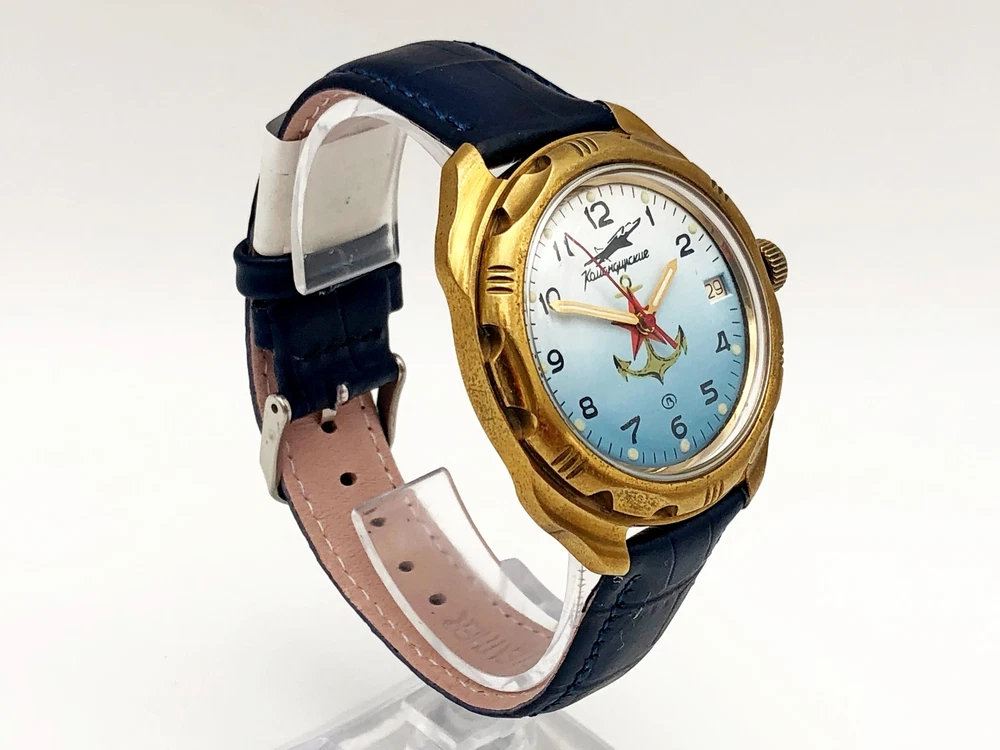 WOSTOK Komandirskie 2414A Vintage Wristwatch USSR Serviced Watch Soviet "Commander" watch, luminescent Indexes, calendar, blue leather band. Produced by the Chistopol Watch Factory The watch is serviced by professional watchmaker. The service included complete disassembly, cleaning and subsequent lubrication of the mechanism. Keeps good time and runs well. Could be a great gift for someone you love or can be added to your collection. Contact me if any questions. I do offer combine shipping discount if you buy 2 items or more. I make shipments the next business day after the purchase. Please watch the photos carefully as they are important part of description. Thanks for your interest. Have a look at some other lots at our store. 💛💙