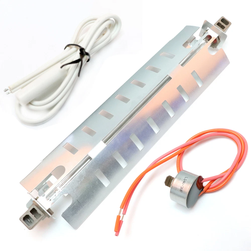 Item always Will Be Sent Out in 24 Hours From Monday to Saturday From California USA With USPS Tracking No. Features: Premium Material and Quality: Made of sturdy metal materials, the refrigerator defrost heater ensures lo ng service life and compatibility, durable to use. Powerful Function: No need to worry about food becoming not fresh, WR51X10055 this part can melt ice and frost around the coil to keep food better.WR55X10025 the aim of sensor is to send the present temperature reading towards the control board.WR50X10068 this part would shut off and cut off the defrost' s electricity when the temperature reached a degree. Save Your Money: With the portable refrigerator defrost heater kit, you do not need to spend hundreds of dollars to replace the refrigerator, convenient and space saving. The kit is designed for Kenmore refrigerators, please check your models before purchase. Replacement Models: The WR51X10055 defrost heater replaces part numbers: WR51X1003, AP3183311, PS303781, 914088, AH303781, EA303781, PS30378, WR51X10030. The WR55X10025 temperature sensor replaces part numbers: 914093, AP3185407, WR50X10027, WR50X10034, WR50X10055, WR50X10067, WR55X10025, WR55X10026, WR55X1002. The WR50X10068 defrost thermostat replaces part numbers: PS1017716, 1170024, AP3884317, WR50X10015,WR50X10017,WR50X10018,WR50X10028,WR50X10051, WR50X10500X50X50X50X50X50X050X0. Package Includes: The package includes 1 x refrigerator defrost heater WR51X10055, 1 x refrigerator temperature sensor WR55X10025, 1 x refrigerator defrost thermostat WR50X10068, complete set of refrigerator defrost replacements. The kit is designed for Kenmore, GE, Hotpoint, RCA. Specifications: Material: Metal Fitment: For Kenmore, for GE, for Hotpoint, for RCA Color: Silver Heater Size: about 31 x 7.3cm/12.2 x 2.87in Notes: Please allow a slight dimension difference due to different manual measurements. Due to the light and screen setting difference, the item's color may be slightly different from the pictures. Package Contents: 1 x Refrigerator Defrost Heater 1 x Refrigerator Temperature Sensor 1 x Refrigerator Defrost Thermostat Payment 1.We only accept PayPal. Credit card payment can also be made via PayPal.eBay Immediate Payment via PayPal. 2.Please fill in a valid contact address. Shipment Items are usually shipped 1 business days after payment has been received. We do not ship on weekends and holidays. Sellers are not responsible for service transit time. Transit times are provided by the carrier, exclude weekends and holidays, and may vary with package origin and destination, particularly during peak periods. Return Policy Out 30-day Satisfaction Guarantee assures our customers that they will receive all orders promptly and exactly as described. In addition , it allows customers to return new and unused products in their original factory condition for any reason within 30 days from the date of purchase. Notice: 1.All returns must be pre-approved by Seller and have a return merchandise authorization (RMA) number. Any problem about item, Please Send the eBay message to us ,we will respone in 24 hours 2.Buyers are responsible for appropriate packing, returning shipping cost, insurance and returning the item in “new” condition. Used items will not be accepted for return. 3.We will replace the returning item with an identical item, issue a full refund. Contact us 1.If for some reason there is any issue with the purchase, please contact us prior to leaving any negative or netrual feedback, and we will work with you to have it resolved.
