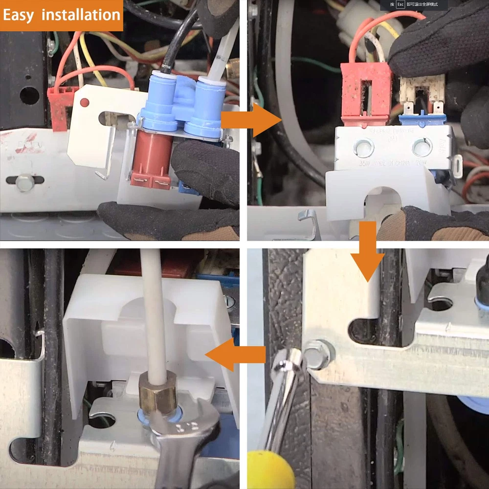 【WR57X10032 DUAL SOLENOID WATER VALVE】-- WR57X10032 Refrigerator Water Inlet Valve for refrigerator is dual inlet water valve comes with a -coil assembly, solenoid valve allows water to flow into the ice maker, and the other solenoid valve allows water to flow into the water dispenser, which can double the efficiency for you. The Blue Coil has 3/16" Male Terminals and the Red Coil has 1/4" Male Terminals. terminal adapters are also included to increase the 3/16" terminals to 1/4". 【HIGH QUALITY METAL AND ABS】-- Water inlet valve WR57X10051 uses a sturdy plastic structure with a metal bracket and a plastic shield, ensuring the long-lasting and effective function. It is located at the back of the fridge, beneath the bottom panel. WR57X10032 ge refrigerator inlet valve can SOLVE THESE PROBLEMS : ①Leaking in refrigerator, ②The ice maker does not make ice, ③Does not dispense water, ④The ice maker will not produce ice etc. 【365 DAYS 】-- WR57X10032 WR57X33326 Water Inlet Valve supports 365 days after-sales service. The packing includes 1 x WR57X10051 Refrigerator Dual Water Inlet Valve with plastic protective shell. Size: 4.5 X 2.6 X 3.8 inches. The wr57x10032 water valve Electrical Specs is 120V, 50/60Hz.WR57X33326 water inlet valve not only suitable for refrigerators with ice and water on the door but also suitable for water pipes, water pump dispensers or ice maker kits. 【FIT FOR MOST GE AND KENMORE REFRIGERATOR】-- WR57X10032 water inlet valve can for GE and Kenmore Refrigerator. WR57X10032 replaces part numbers: 880070, AP3192626, WR57X10040, WR57X10064, PS304374, AH304374, EA304374. WR57X10032 with the following models ZIR301NPNAII, ZIR361NPRAII, ZIR301NBRAII, ZIR241NBRAII, ZIR301NPPBII , ZIR241NPNAII, ZIR361NBRAII, ZIR241NPPBII, 36350232000, 36350237000, 36350242000, 36350247000, 36350622000, 36350627000, 36358272891, 36358272892, 36358272893, 36358272896, 36358275891, 36358275892, BSS25GFPACC, BSS25GFPAWW, BSS25GFPCCC, BSS25GFPCWW and more. 【EASY DIY INSTALL】-- Before replacing the ge wr57x10032 wr57x33326 refrigerator waterinlet valve, disconnect the power source and water source., only need a adjustable wrench and impact driver with 5/16 and 1/4in bits. This new valve uses new, quick connections. Cut the existing nuts off of existing plastic water lines and push them into new valve. ollowing along with an online repair video is the easiest way to ensure proper DIY installation of wr57x33326 water inlet valve.
