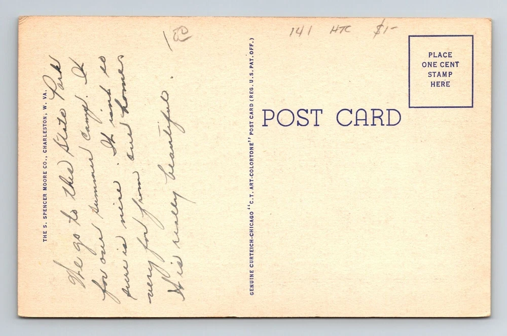 Original/Licensed Reprint: Original Type: Printed (Lithograph) Subject: Cities & Towns Theme: Cities & Towns Region: West Virginia Unit of Sale: Single Unit Country/Region of Manufacture: Unknown Era: Linen City: West Virginia Country: USA Postage Condition: See Image