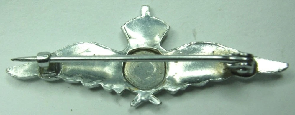 World War Two Royal Air Force sweetheart wing pin. King's crown. Die struck - 1 11/16 inches across in size. pinback with a simple hook pin catch.