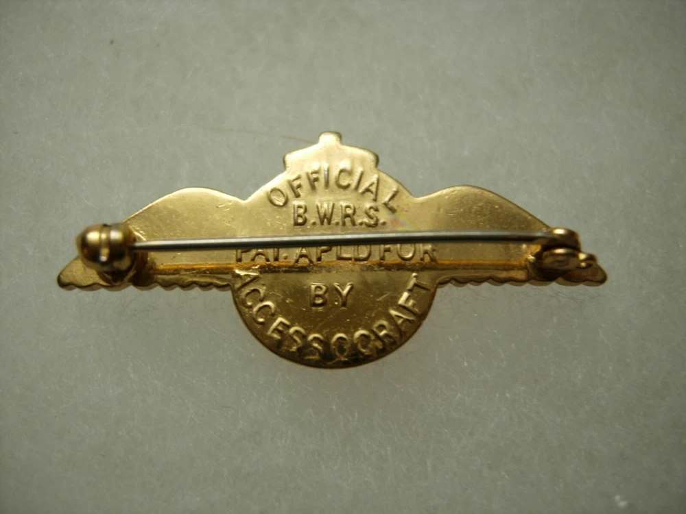 This was a money fundraiser for the British War Relief Society. Made in the USA by Assesocraft. 1 3/8 inches across in size. Pin back with a roll locking pin catch.