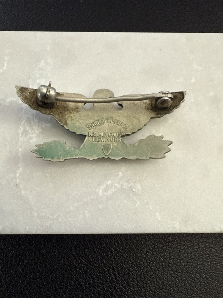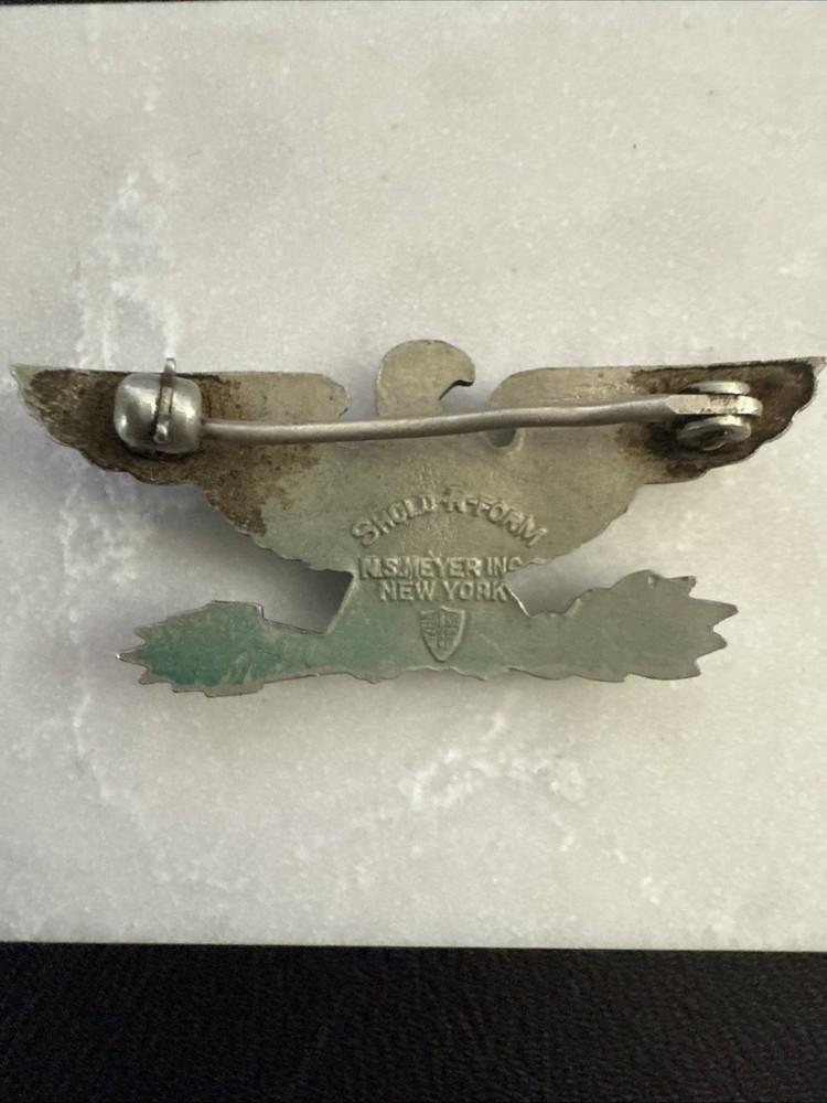 Embrace a piece of history with the WW2 Marine Corps Colonel Navy Captain War Eagle Insignia. Crafted during the gripping era of WW II (1939-45), this original emblem embodies the valor and heritage of United States militaria. The insignia, a testament to the rich tradition of the US Marine Corps, is a genuine artifact that hails directly from the heartland of American warfare. Expertly manufactured in the United States, this emblematic piece is not only a collector's item but also a tribute to those who served. It is an authentic representation of the era, preserving the stories and sacrifices of a bygone time. Adding this insignia to your collection is an opportunity to own a tangible piece of the past and honor the bravery of those who came before.
