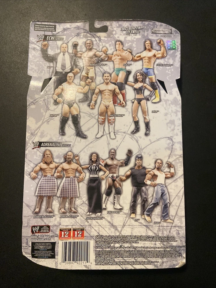 This item is a sealed package WWF Jakks figure of former WWF WWE ECW Gene Snitsky who also wrestled for NWA TNA Impact and MLW. He is from the ECW series 3 and includes an ECW belt. It was produced in 2007 by Jakks Pacific. While he is on his sealed card there is damage to the edges and corners of the card as can be seen in the photos. Shipping outside of the United States will be extra. Please check out my other wrestling auctions and contact me with any questions or wrestling related item requests. Serious bidders only as negative comments will be placed if bids are not completed. Good Luck