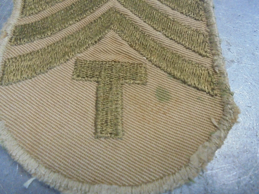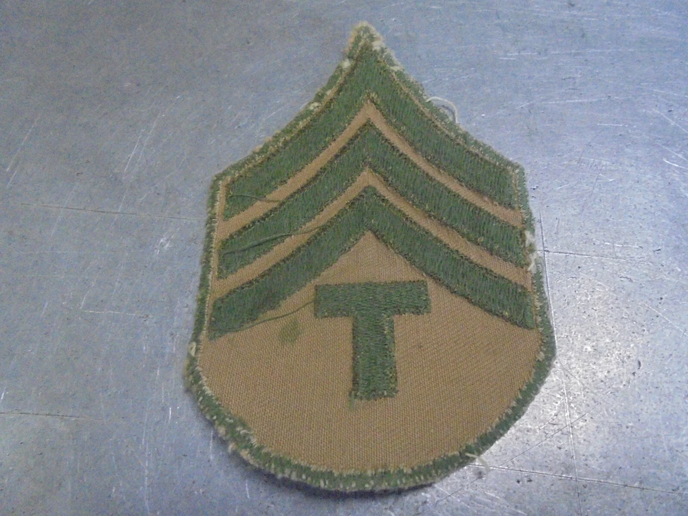 You are bidding on a U. S. Army Technician 4th Grade. It measures 2 and 7/8 inches by 4 and 1/2 inches. The color is a golden brown on tan. Small stain. I am not sure of the age but I am listing them under WWII. I will be selling hundreds of old military items that came from a local estate. His collection was built over fifty years. I am not an expert. I will try to describe as best I can. Please ask questions and correct me when I am wrong. There are a few items from the civil war, most from WWI or WWII, a few items may date from the Vietnam era. I will try to list 15-20 items per day. It is in very good condition. I combine shipping on multiple purchases.