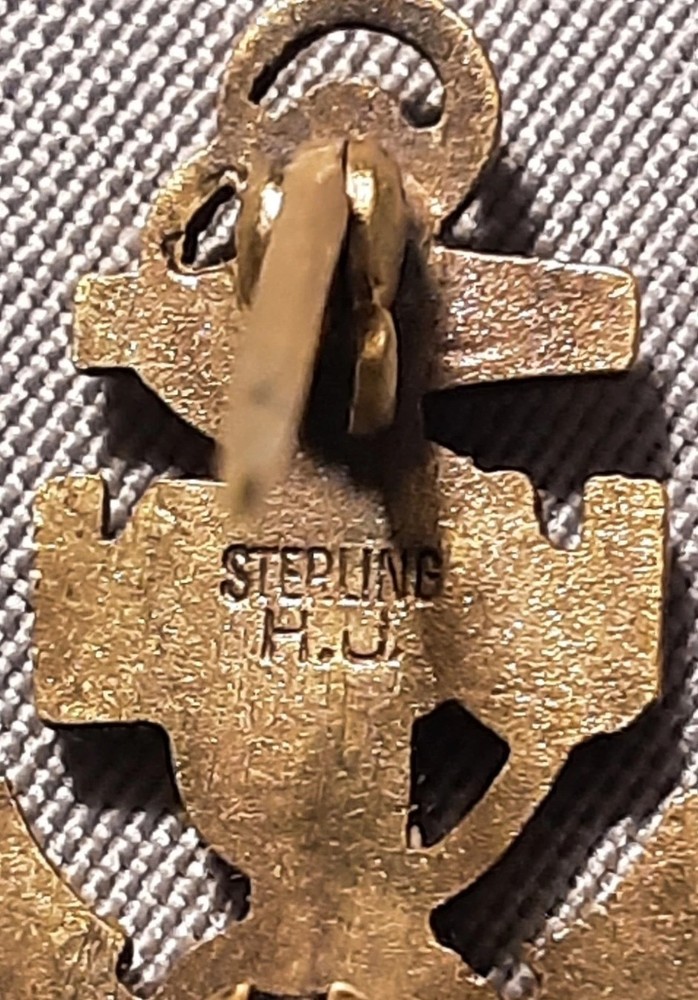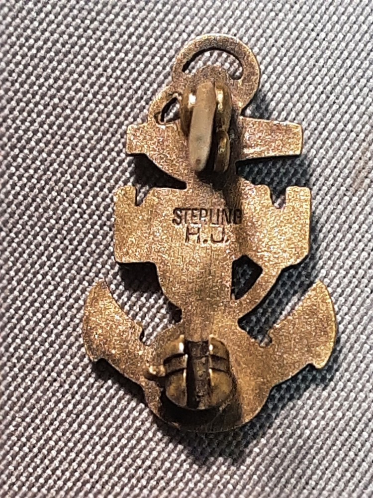 This vintage WWII US Navy Sweetheart Pin made by Herff-Jones (HJ) Fouled Anchor Pin with Safety Pin Back is a true collector's item. With its original design and US Navy markings, it is a must-have for any militaria enthusiast. The pin is in excellent shape and ready to be displayed in any collection. The pin features a fouled anchor design, which is a symbol of the US Navy's rich history. The saftety pin back makes it easy to display the pin on any jacket or lapel. This original period item is a great addition to any collection and is sure to be a conversation starter. World War 2 era USN anchor sweetheart pins made by Herff Jones: Pin Details: ● Material: Sterling Silver ● Size: Usually under 3/4" (2.5 cm) in length ● Design: Features the USN anchor insignia with a rope ● Manufacturer: Herff Jones Historical Context: ● World War 2 era: These pins were popular among loved ones of US Navy personnel during World War 2 ● Symbolism: The anchor represents hope, stability, and maritime tradition Additional Information: ● Herff Jones is a well-known manufacturer of military insignia, including sweetheart pins USN anchor pins: Often worn by loved ones as a symbol of pride and connection to their service member