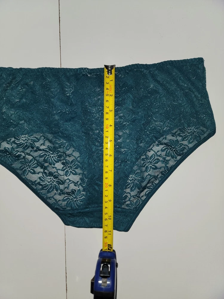 This is a dark teal Wacoal hi-cut brief panty made of stretch lace with floral lace pattern and embroidered scalloped accents. It is a glamorous and elegant underwear piece for women, featuring a high-rise design, high leg cut, and breathable nylon/spandex material. The semi-transparent lace fabric adds a romantic and classic touch to this stylish lingerie.
