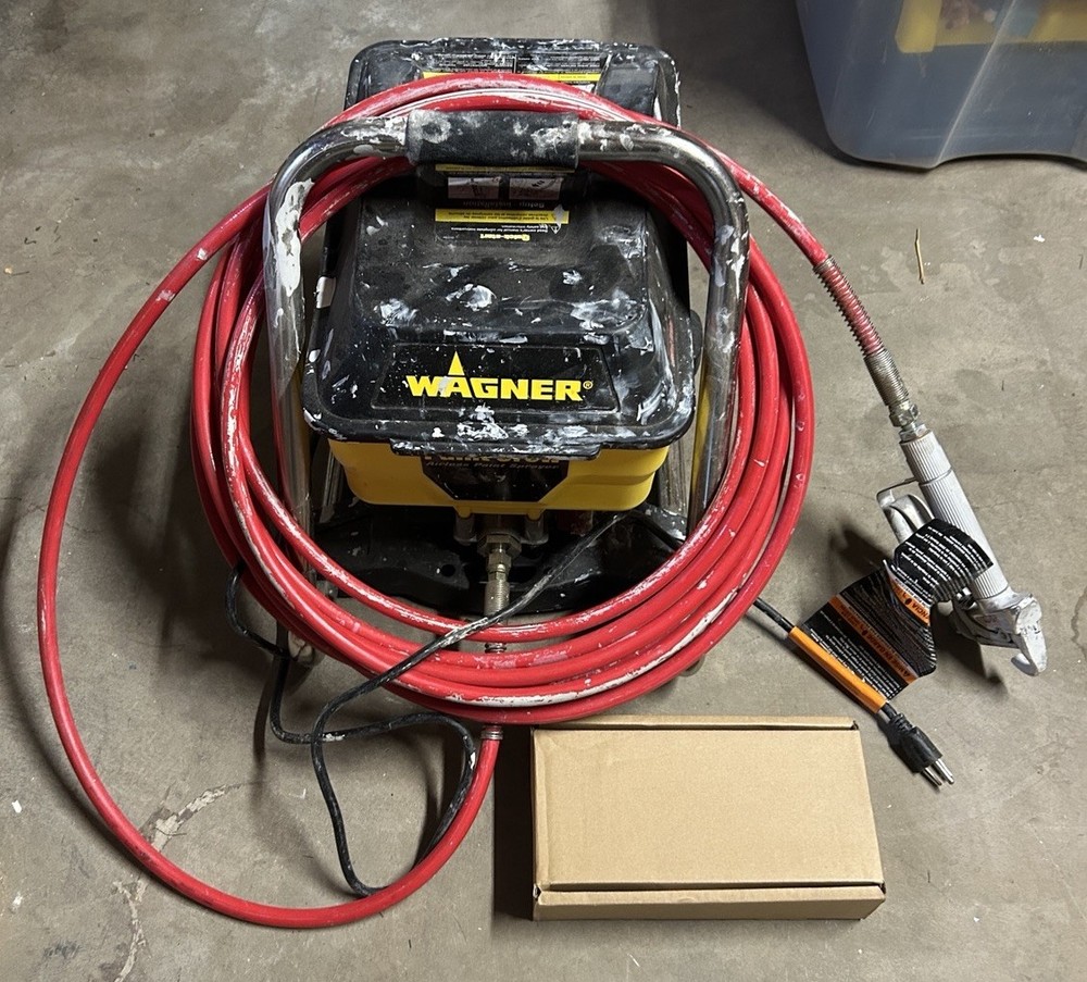 The Wagner Paint Crew Model 770 Electric Airless Paint Sprayer is a versatile tool suitable for exterior painting projects. With a 2-gallon cup/hopper capacity and a piston pump, this sprayer can efficiently dispense paint through a 517 spray tip size. The 4-finger trigger configuration allows for easy control, while the adjustable pattern control feature ensures a smooth finish. The included hose and cart frame make it convenient to use and transport, making it a reliable choice for both professionals and DIY enthusiasts. Additionally, the manufacturer warranty of 1 year provides peace of mind for any purchases.