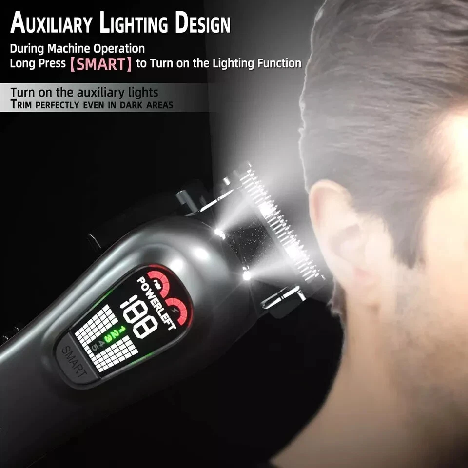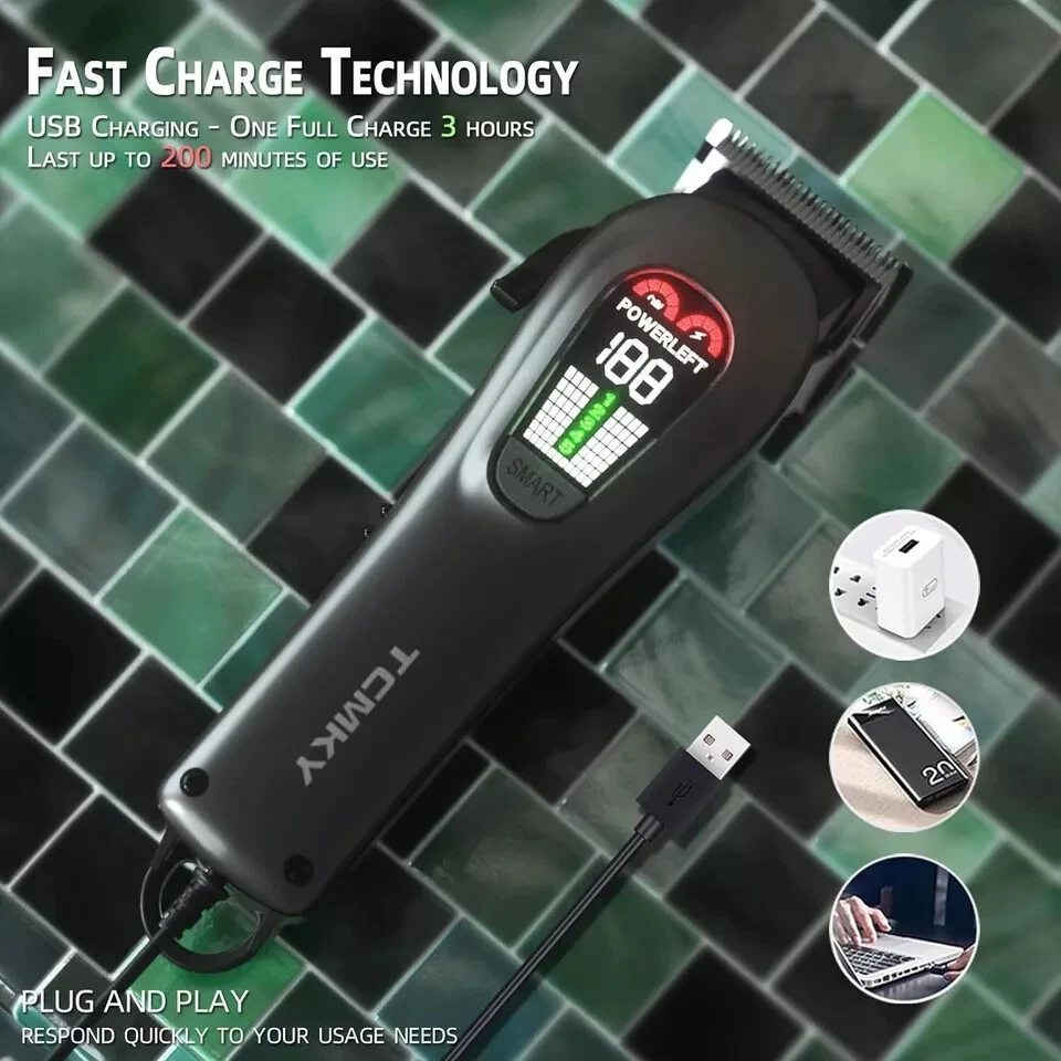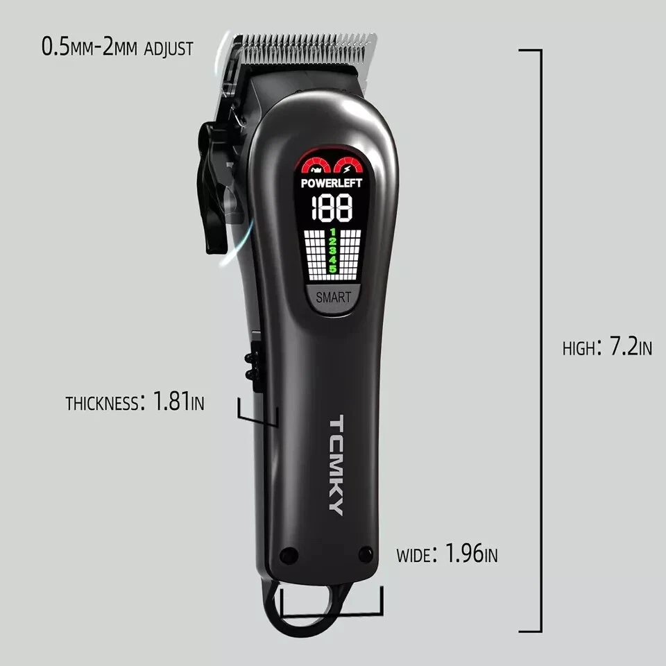 Hair Clippers for Men Professional Hair Trimmer for Men - Cordless&Corded Barber Clippers for Hair Cutting & Grooming, Rechargeable Hair Trimmer Kit for Household(Silvery)… About this item 【CORDLESS&CORDED】TCMKY Hair trimmer can be with cord or cordless which is super convenient for self-cutting. USB charging 3Hours - One full charge Last up to 200 minutes of use.When the power of the hair clipper is used up,This hair trimmer supports plug and play.When charging, The charging capacity can be seen from the display.When the power in the display screen is 100%, unplug the power cord 【High Performance Sharp Steel Blade】: The blade of this hair clippers is sharp, durable and efficient. Precise clearance design improves its safety performance. The depth is close to the skin, and the trimming and friction are small, which will not hurt the skin 【Auxiliary Lighting】 The TCMKY hair clipper is equipped with a suitable lighting option, which is located at the head of the hair clipper. Push the power switch upward to start the hair clipper, and then press and hold the 【SMART]】button for 3 seconds to turn on the lighting function. When traveling, you can efficiently trim even without lighting. 【Professional Hair Clipper&LED Display】- TCMKY Professional Hair Clipper which can display the remaining power,charging reminder indicator and Blade lubrication reminder indicator. Our ultra-high definition LED display provides you with all information to ensure that you use it correctly. In addition, it includes a full-size guide comb to meet your need for trimming your head and face. Due to its low noise and safety blade, it is also suitable for children or young children to have a haircut 【Power Adjustable of 5th Gear 】 When the hair clippers is started for the first time, the default is 1st gear, and the [SMART] button is the gear selection button. Each time this button is pressed, it will increase one gear until the maximum gear 5 is reached. Similarly, this machine has memory function. When the machine is powered off in any gear from 1st gear to 5th gear, the machine will remain in the gear before the power off. It is convenient to remember your most frequently used gear 【Low Noise, Performance Rotary Motor】 The electric clipper's motor is powerful enough to cut through even the thickest hair with ease. The teeth on the blade are tightly line up with each other to remove hair with no snagging or pulling, offering an effective haircut.if you feel any problem. Please contact us,We will provide you a satisfactory solution. 🚚 2 -Day Shipping Receive your order at your doorstep within just 2 day of purchase. We understand the importance of timely delivery and strive to get your products to you as quickly as possible. 🔁 30-Day Free Returns: 24 hour customer support