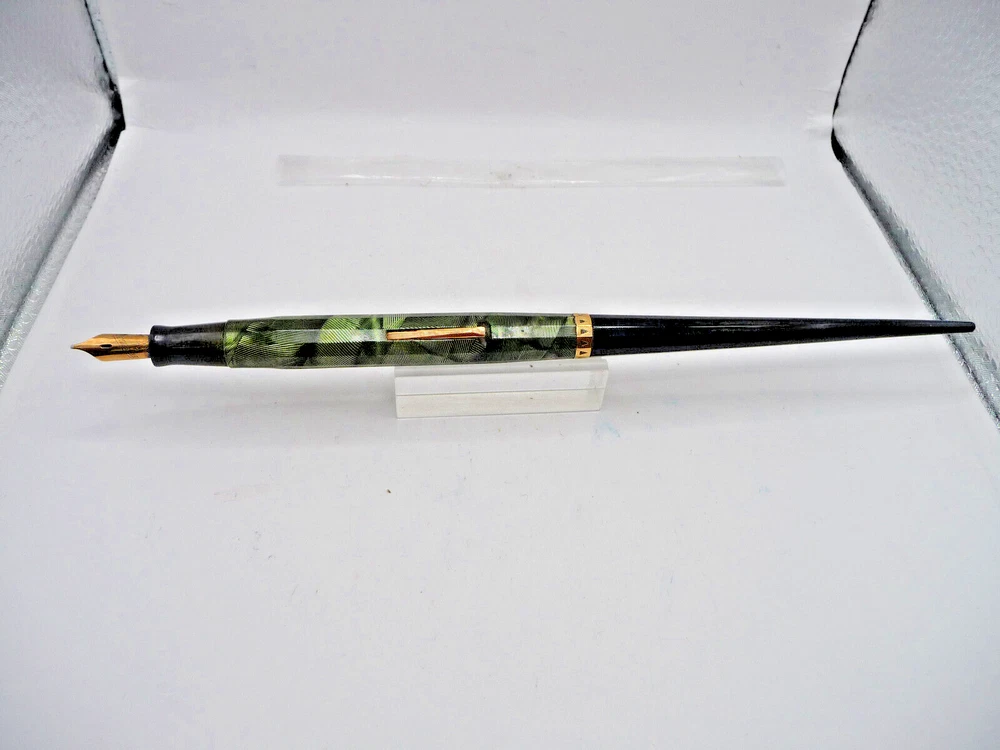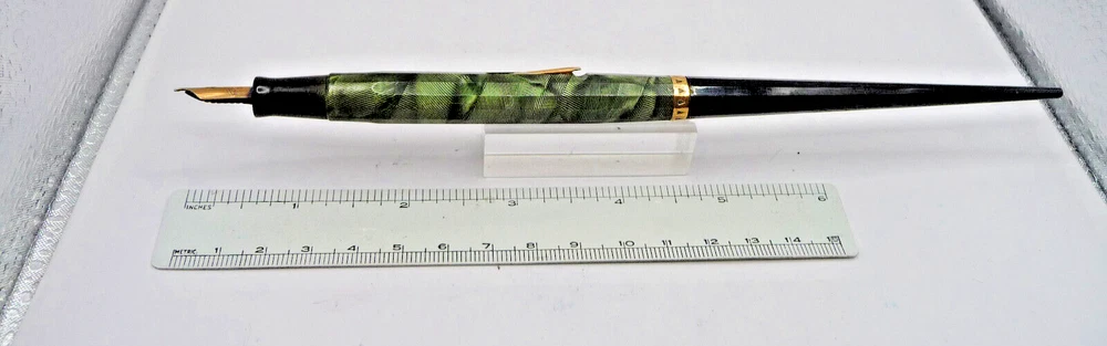 Wahl-Eversharp Vintage Lever Fill Desk Pen--Double Check Emblem working with new sac installed Eversharp l4k signature stub point nib gold trim--8-1/2 inches long I also have listed a matching pen with fine point Visit my ebay store-5000 pen related items