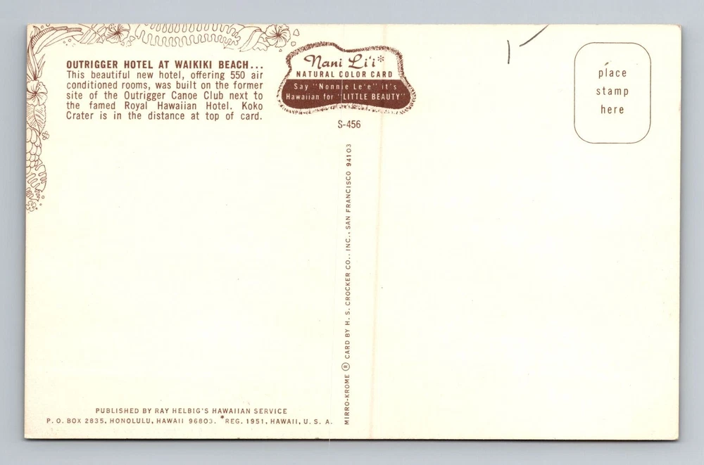 Waikiki Beach HI-Hawaii, Outrigger Hotel, Advertising, Vintage Postcard