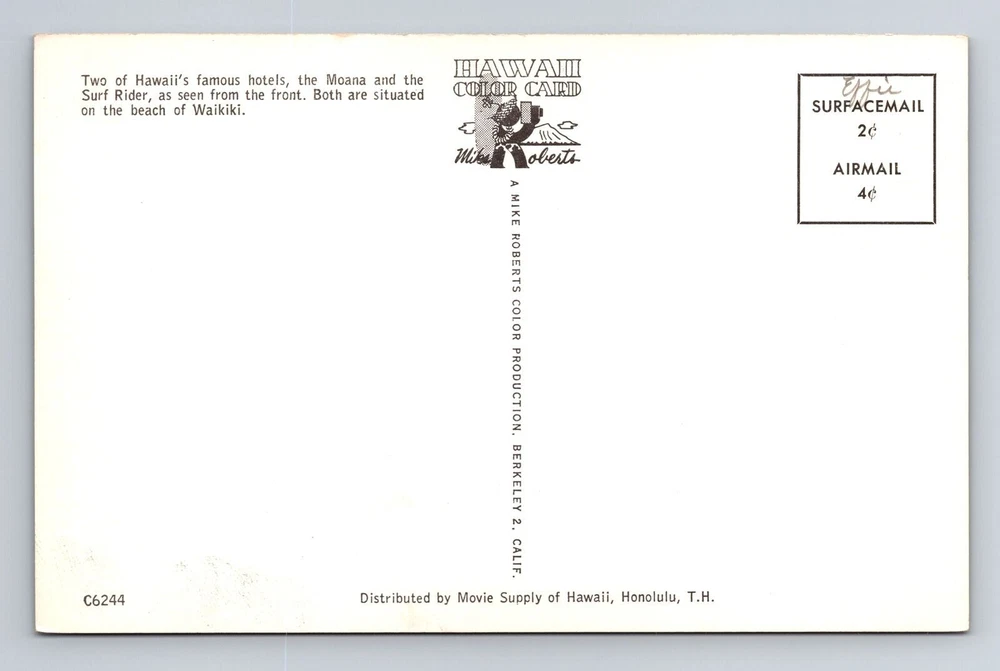 Waikiki HI-Hawaii, Aerial Of Moana And Surf Rider, Vintage Postcard