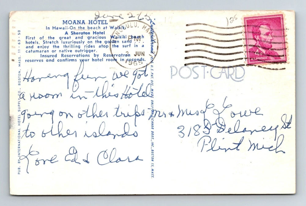 Theme: Cities & Towns Unit of Sale: Single Unit Original/Licensed Reprint: Original Country/Region of Manufacture: United States Country: USA Continent: North America Subject: Cities & Towns Era: Chrome Region: Hawaii Postage Condition: Posted Type: Printed (Lithograph) City: Waikiki