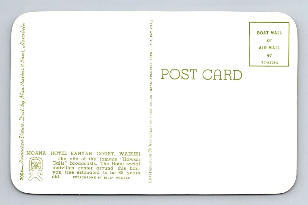 Waikiki HI-Hawaii, Moana Hotel Banyan Court, Advertising, Vintage Postcard