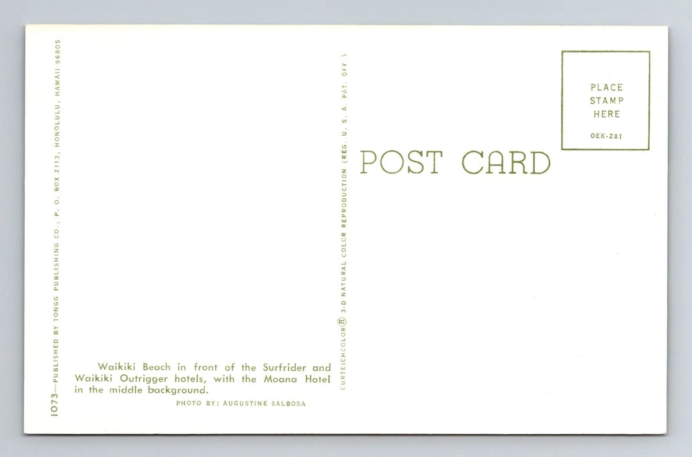 Unit of Sale: Single Unit Subject: Cities & Towns Type: Printed (Lithograph) Original/Licensed Reprint: Original City: Waikiki Postage Condition: See Image Theme: Cities & Towns Region: Hawaii Era: Chrome Country/Region of Manufacture: Unknown Country: USA