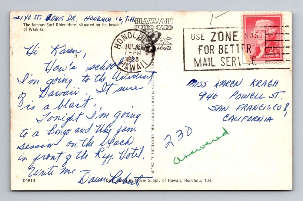 Waikiki HI-Hawaii, Surf Rider Hotel, Beach, Advertising, Vintage Postcard