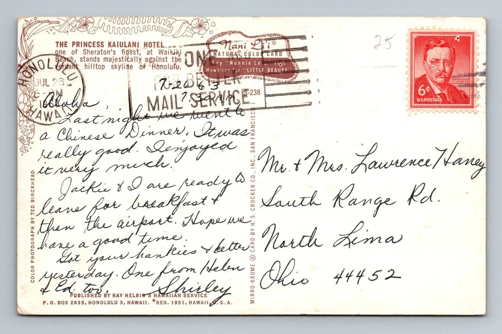 Waikiki HI-Hawaii, The Princess Kaiulani Hotel, Vintage c1963 Postcard