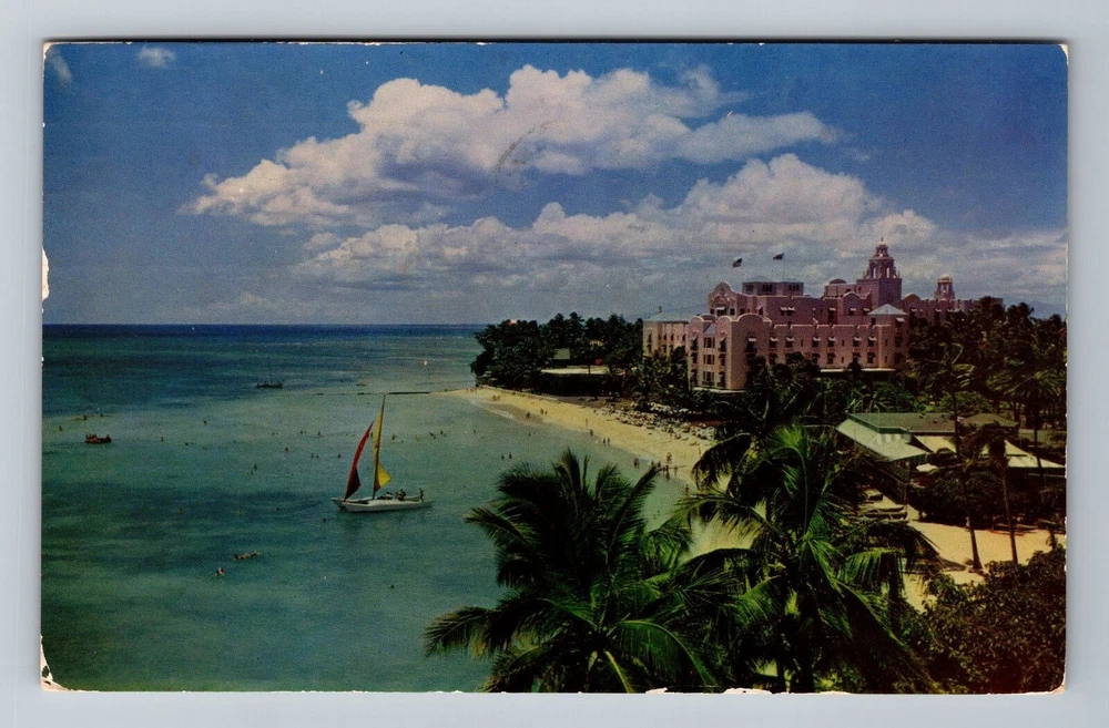 Waikiki HI-Hawaii Waikiki Beach The Royal Hawaiian Hotel c1952 Vintage Postcard