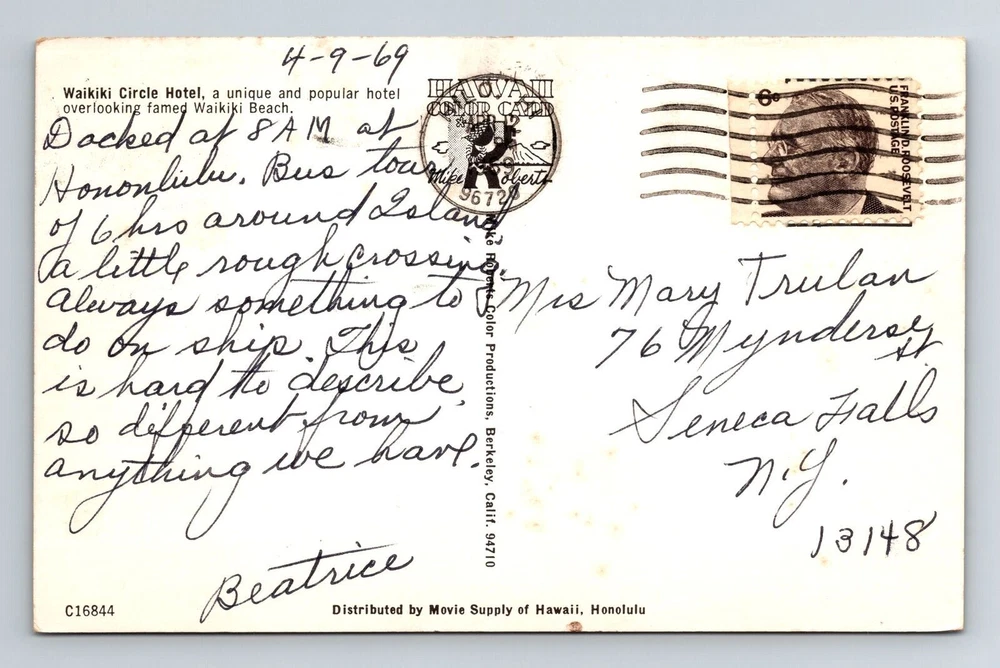 Subject: Cities & Towns Type: Printed (Lithograph) Era: Chrome Theme: Cities & Towns City: Waikiki Original/Licensed Reprint: Original Country: USA Region: Hawaii Unit of Sale: Single Unit Postage Condition: See Image Country/Region of Manufacture: Unknown