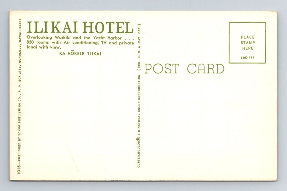 Waikiki Hawaii Ilikai Hotel Scenic Vintage Postcard View Area