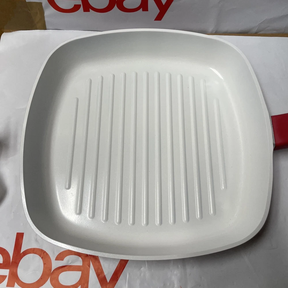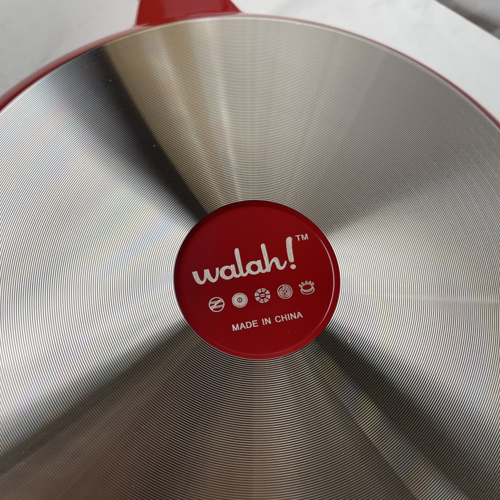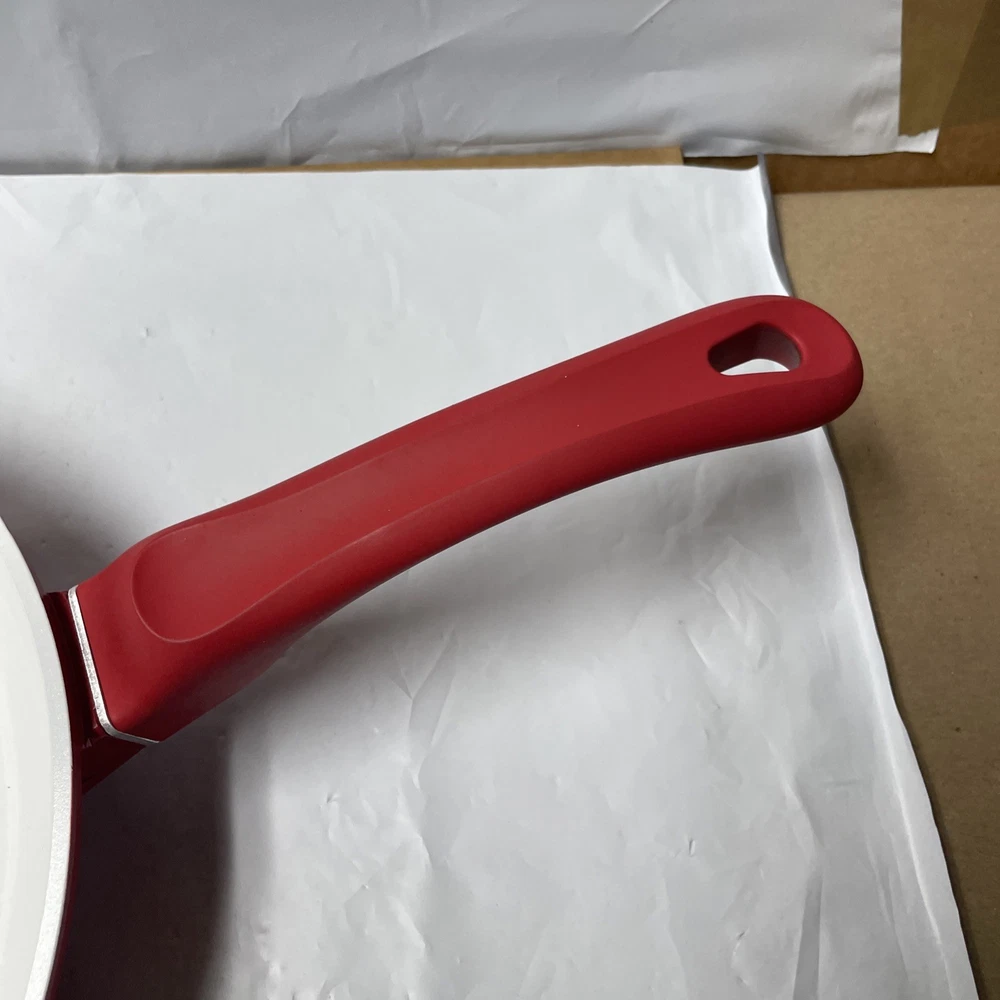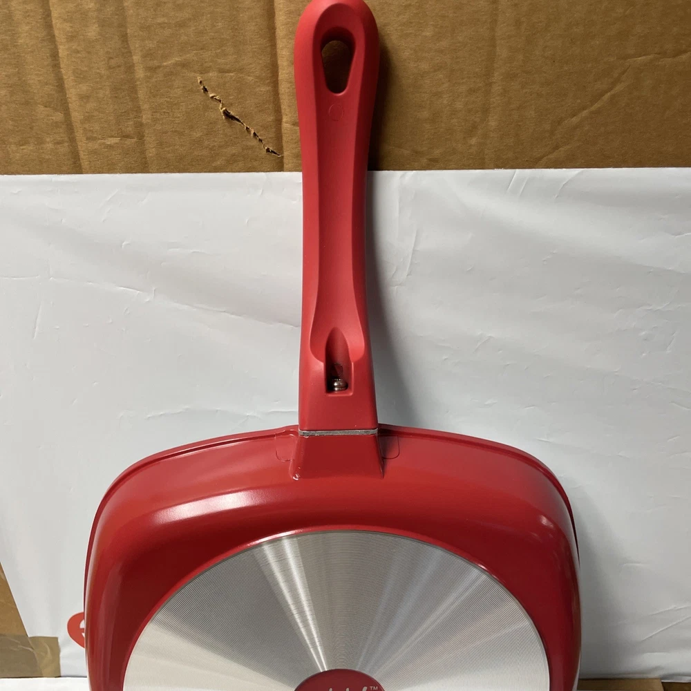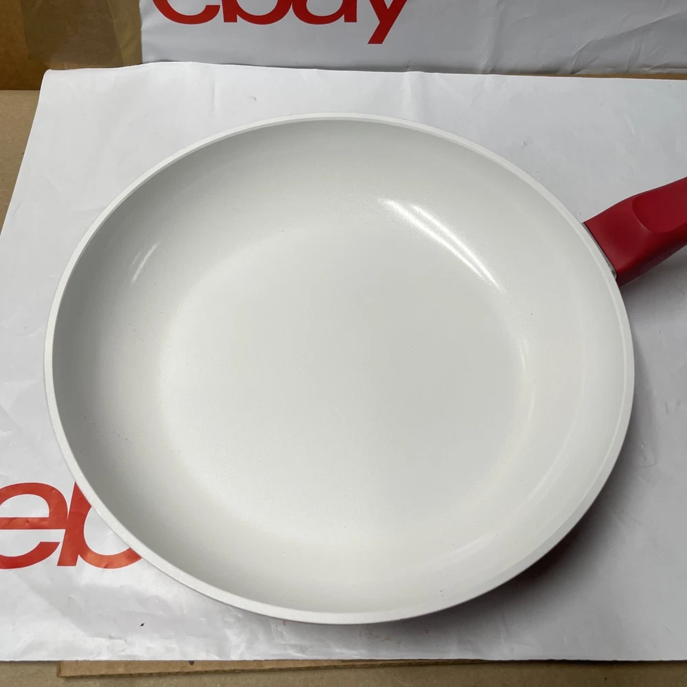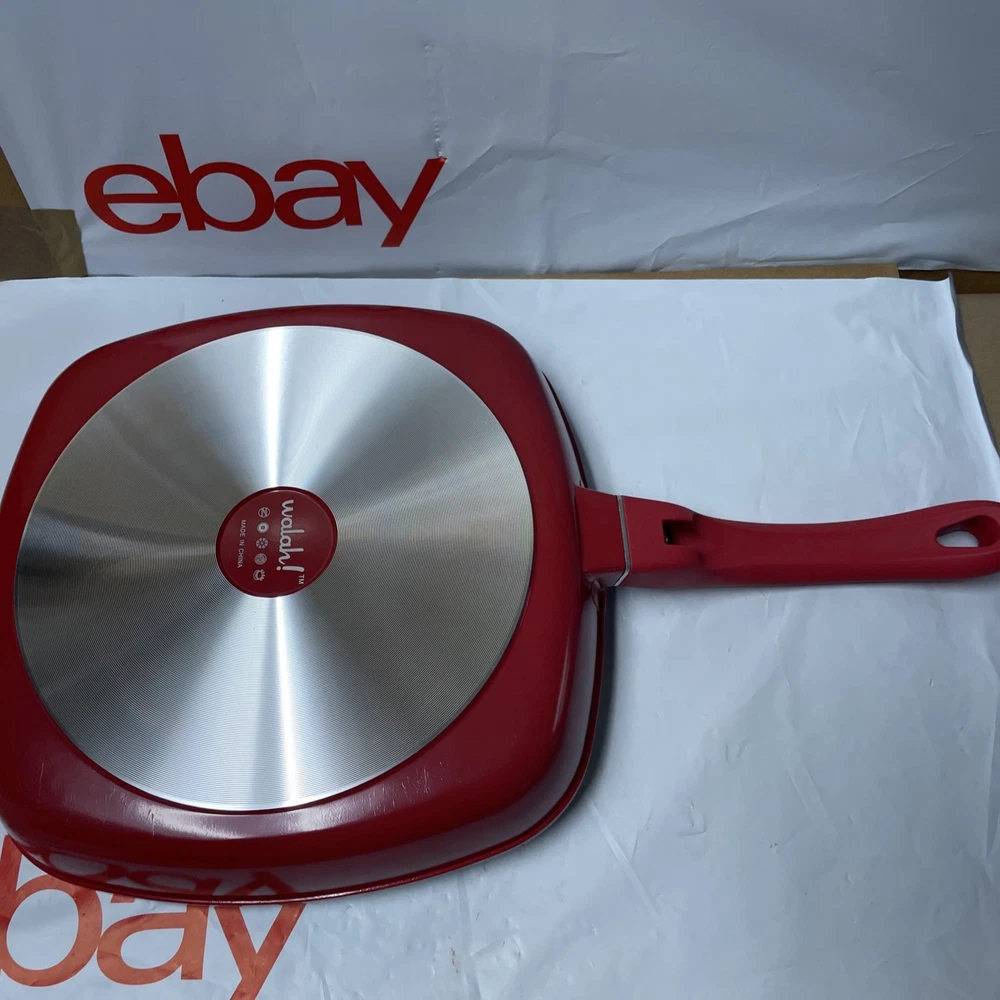 The Walah 10.5" Ceramic Nonstick Cooking Pan Set in red includes two pans suitable for use on induction, electric, and gas stoves. Made by Walah, the pans feature a ceramic non-stick surface coating for easy cooking and cleaning. The set is designed with a modern and stylish red color that adds a touch of elegance to any kitchen. Whether you're a home cook or a professional chef, this pan set is a practical and versatile addition to your cooking arsenal. Open box for clarity. See photos. 10.5” in diameter.