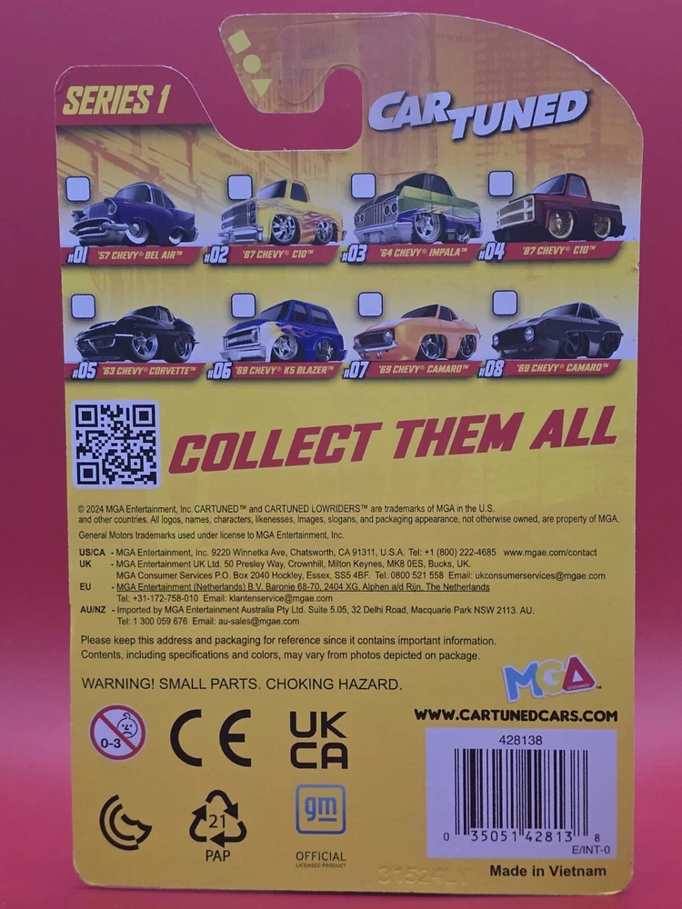 This Walgreens Exc #04 MGA Car Tuned '87 Chevy C10 Series 1 Metallic Red HTF is a rare find for collectors. The 1:64 scale diecast model is a special edition with an unopened box and a chase variant. The red color and custom theme make it a must-have for fans of the Car Tuned series. The model features a Chevrolet pickup truck with intricate details and a metallic finish. It was manufactured in 2024 by MGA Entertainment and is part of the Contemporary Manufacture category. The vehicle year is 1987, and it is a great addition to any toy or hobby collection.