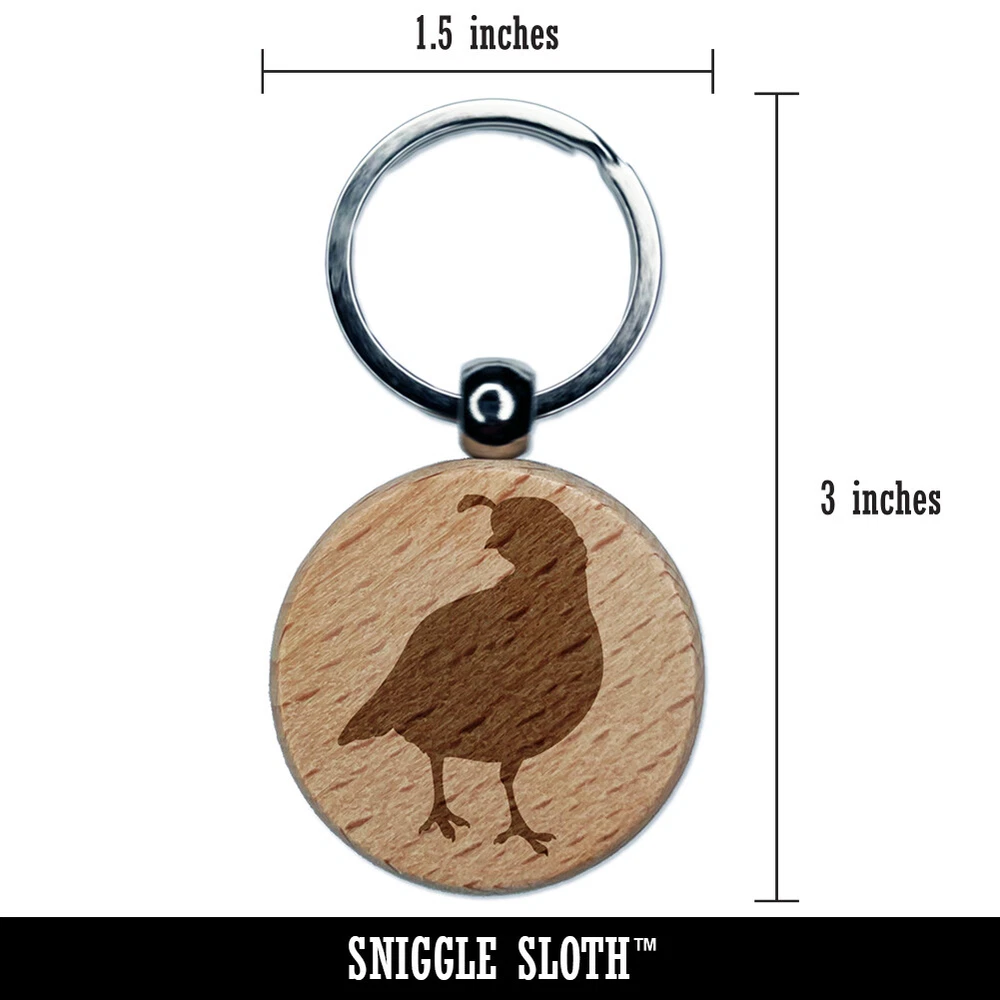 Walking Quail Bird Solid Engraved Wood Round Keychain Tag Charm